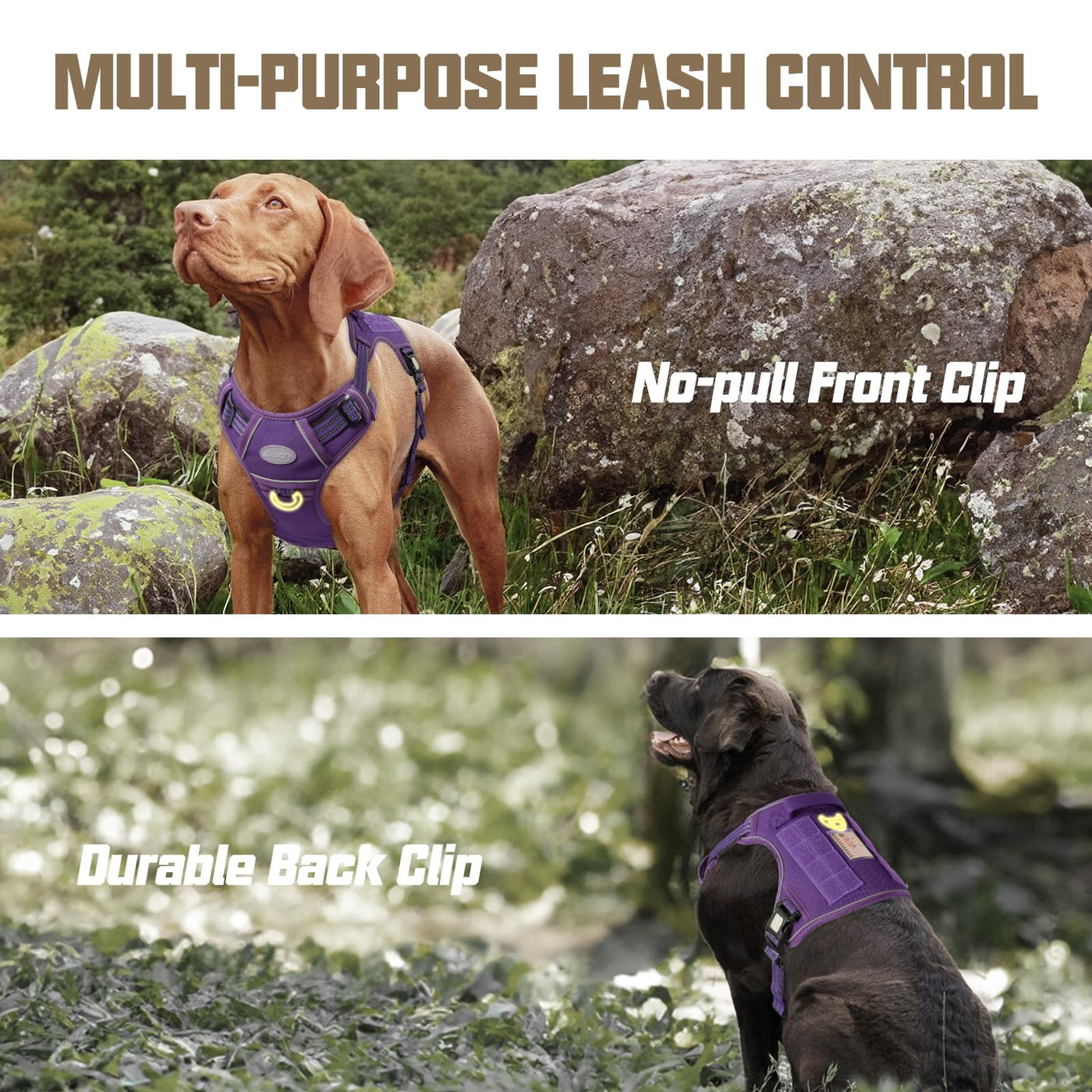 Auroth Tactical Dog Harness For Large Dogs No Pull Adjustable Pet Harness Reflective K9 Working Training Easy Control Pet Vest Military Service Dog Harnesses Purple S