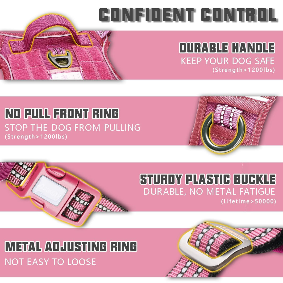 Auroth Tactical Dog Harness For Large Dogs No Pull Adjustable Pet Harness Reflective K9 Working Training Easy Control Pet Vest Military Service Dog Harnesses Rose Red Xl