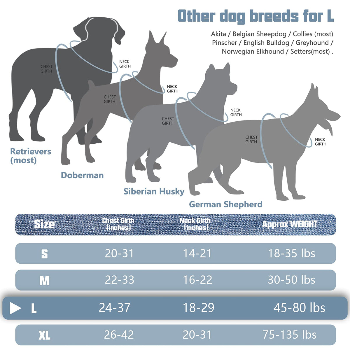 Q: What sizes are available for the AUROTH Tactical Dog Harness?A: The AUROTH Tactical Dog Harness is available in various sizes, including Large, which fits necks between 18-29 inches and chests between 24-37 inches. Be sure to check the sizing chart before purchasing to ensure the perfect fit for your dog.