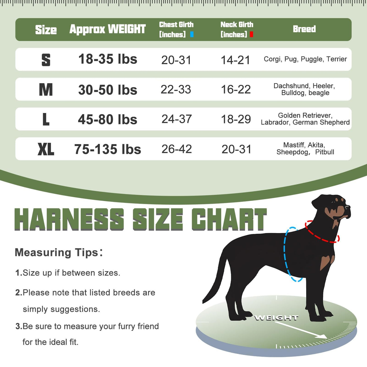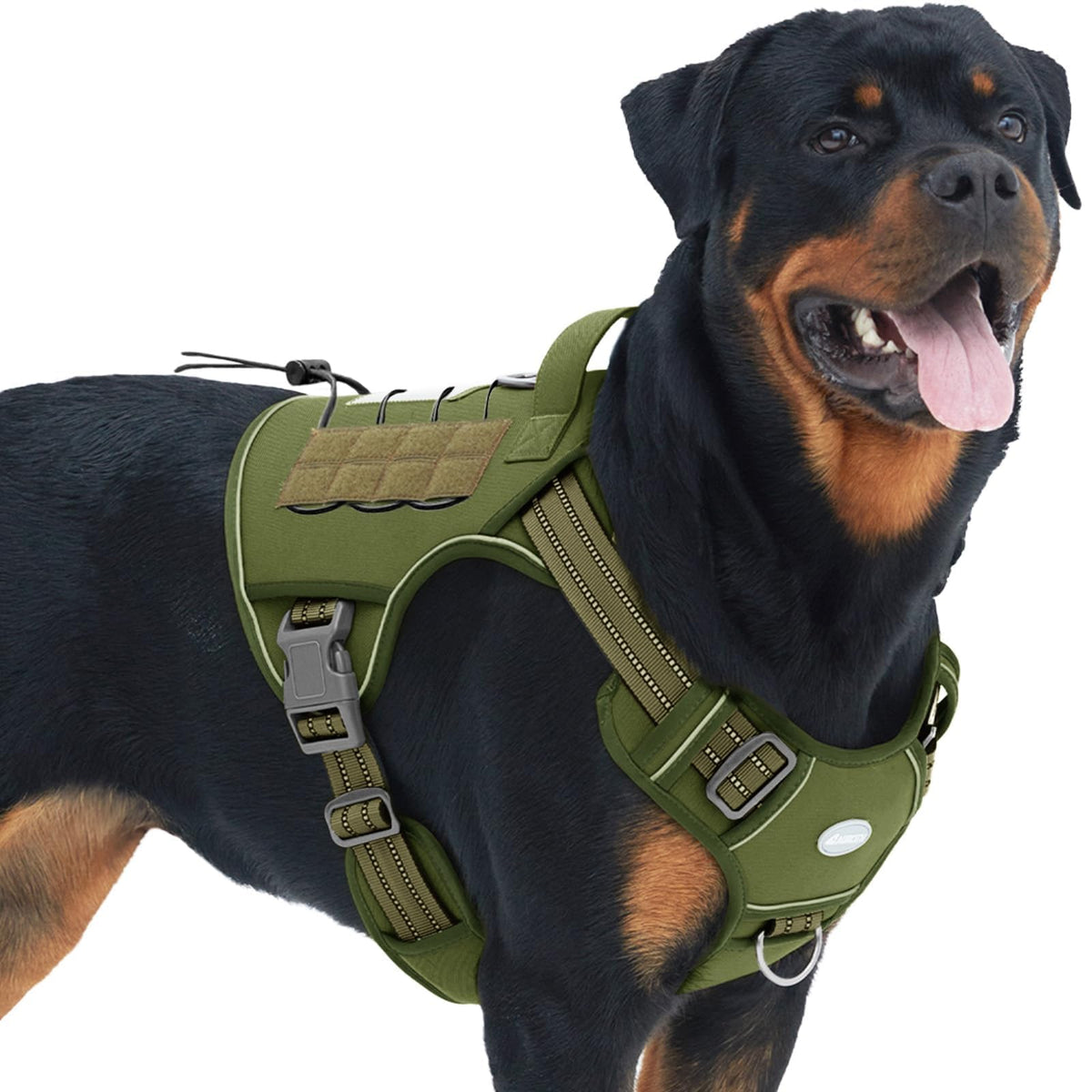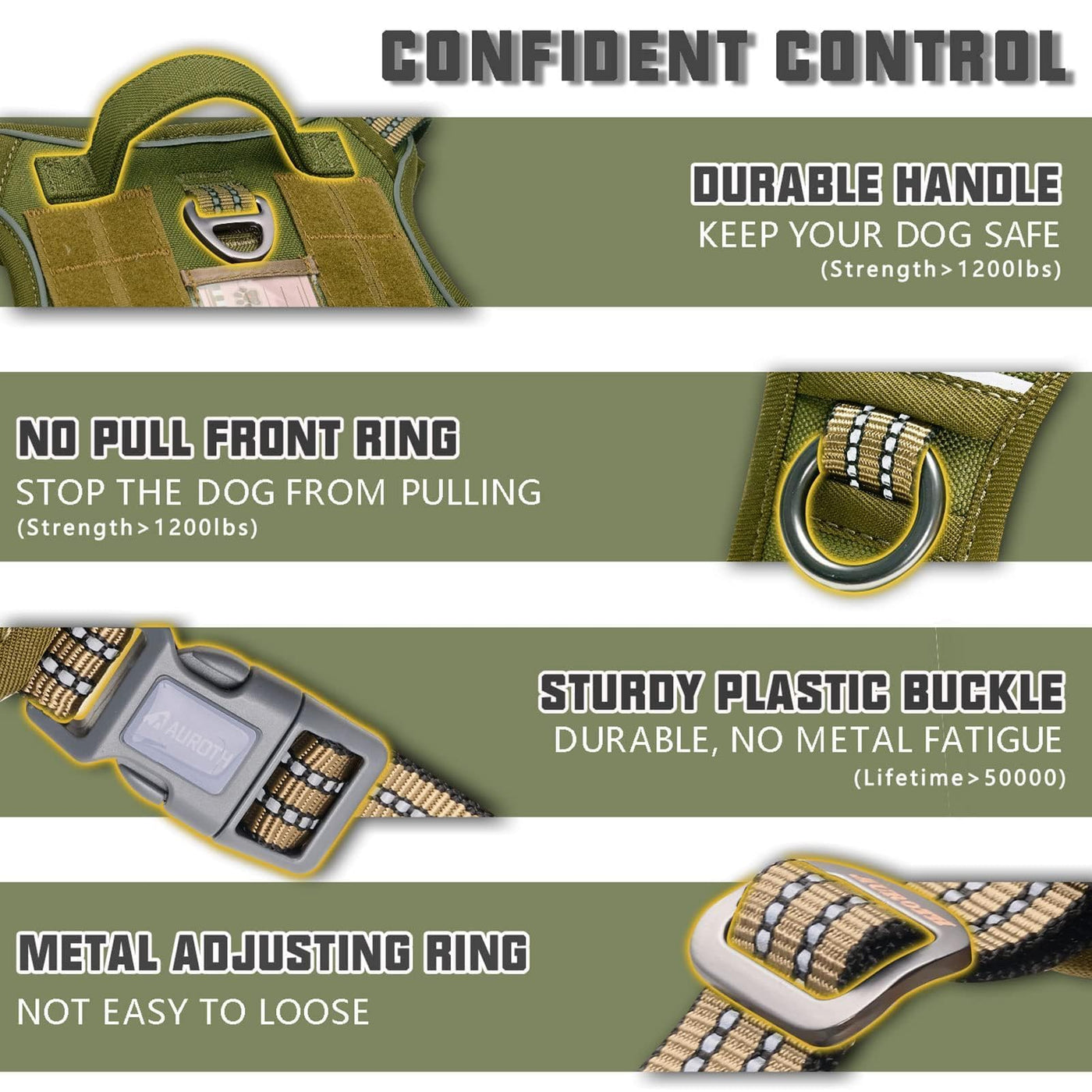 Auroth Tactical Dog Harness For Small Medium Large Dogs No Pull Adjustable Pet Harness Reflective K9 Working Training Easy Control Pet Vest Military Service Dog Harnesses L,Green