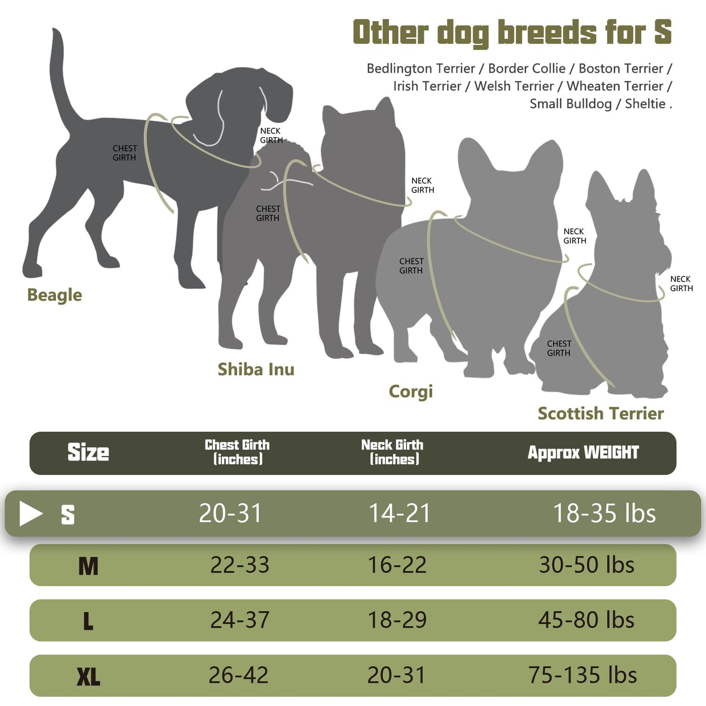 Auroth Tactical Dog Harness For Small Medium Large Dogs No Pull Adjustable Pet Harness Reflective K9 Working Training Easy Control Pet Vest Military Service Dog Harnesses S, Green