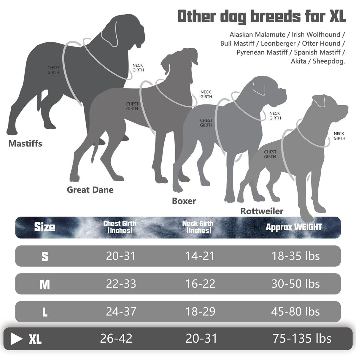 Q: What sizes are available for the AUROTH Tactical Dog Harness?A: The AUROTH Tactical Dog Harness is available in various sizes, including XL, which fits dogs with a neck size of 20-31 inches and a chest size of 26-42 inches. Be sure to check the sizing chart for the best fit for your dog.