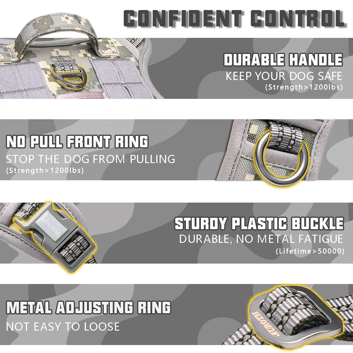 Auroth Tactical Dog Harness For Small Medium Large Dogs No Pull Adjustable Pet Harness Reflective K9 Working Training Easy Control Pet Vest Military Service Dog Harnesses Xl Grey Camo