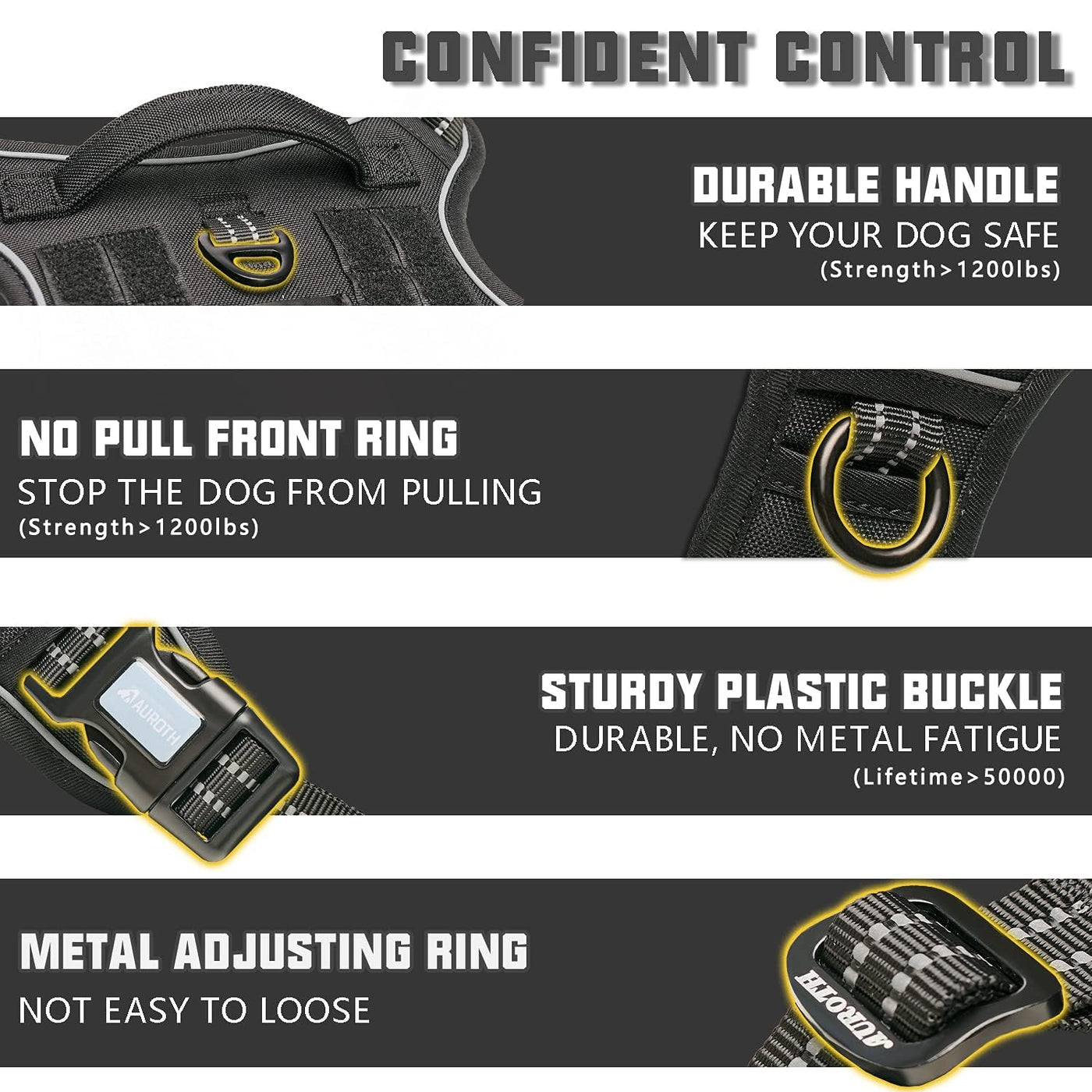 Auroth Tactical Harness For Small Medium Dogs No Pull Adjustable Pet Harness Reflective K9 Working Training Easy Control Vest Military Service Dog Harnesses Black M