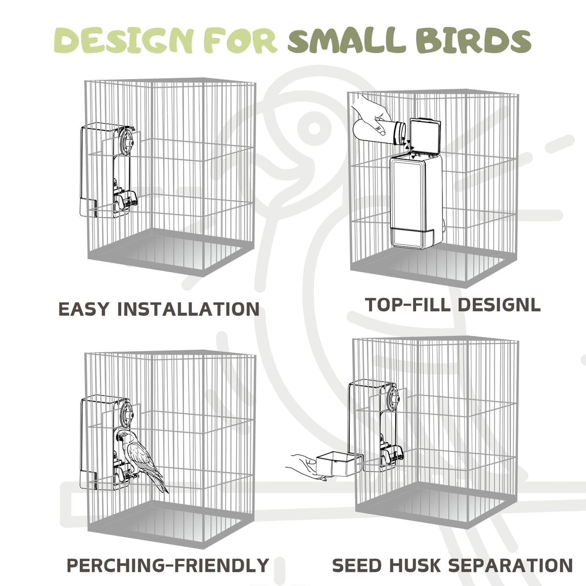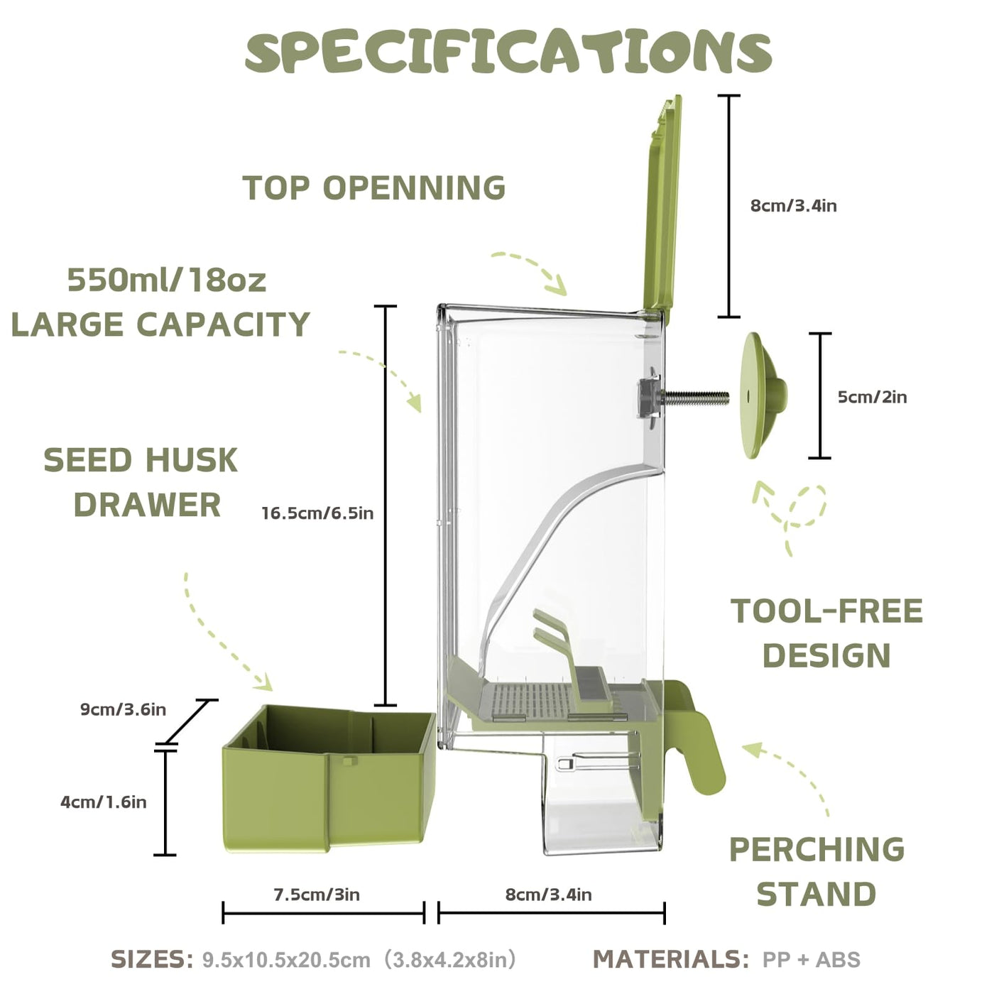 Automatic Bird Feeder, Bird Cage Feeder with Perch for Parakeet Canary Cockatiel Finch (Green)