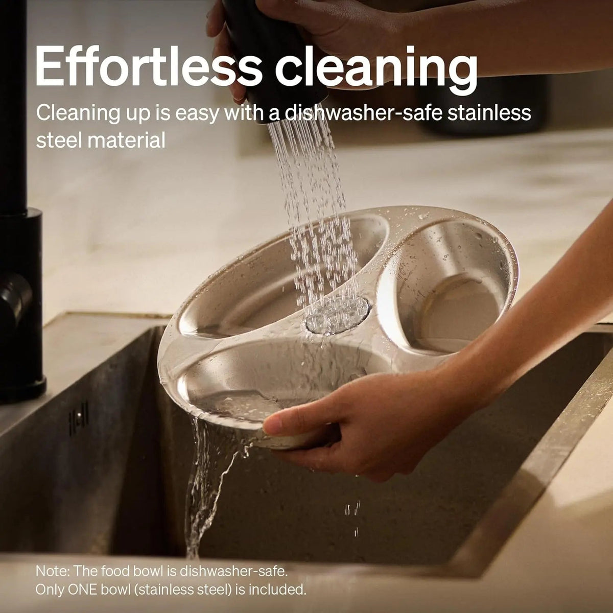 Includes a dishwasher-safe stainless steel tray that resists odor, residue, and bacteria—promoting cleaner feeding and better skin health for your cat.