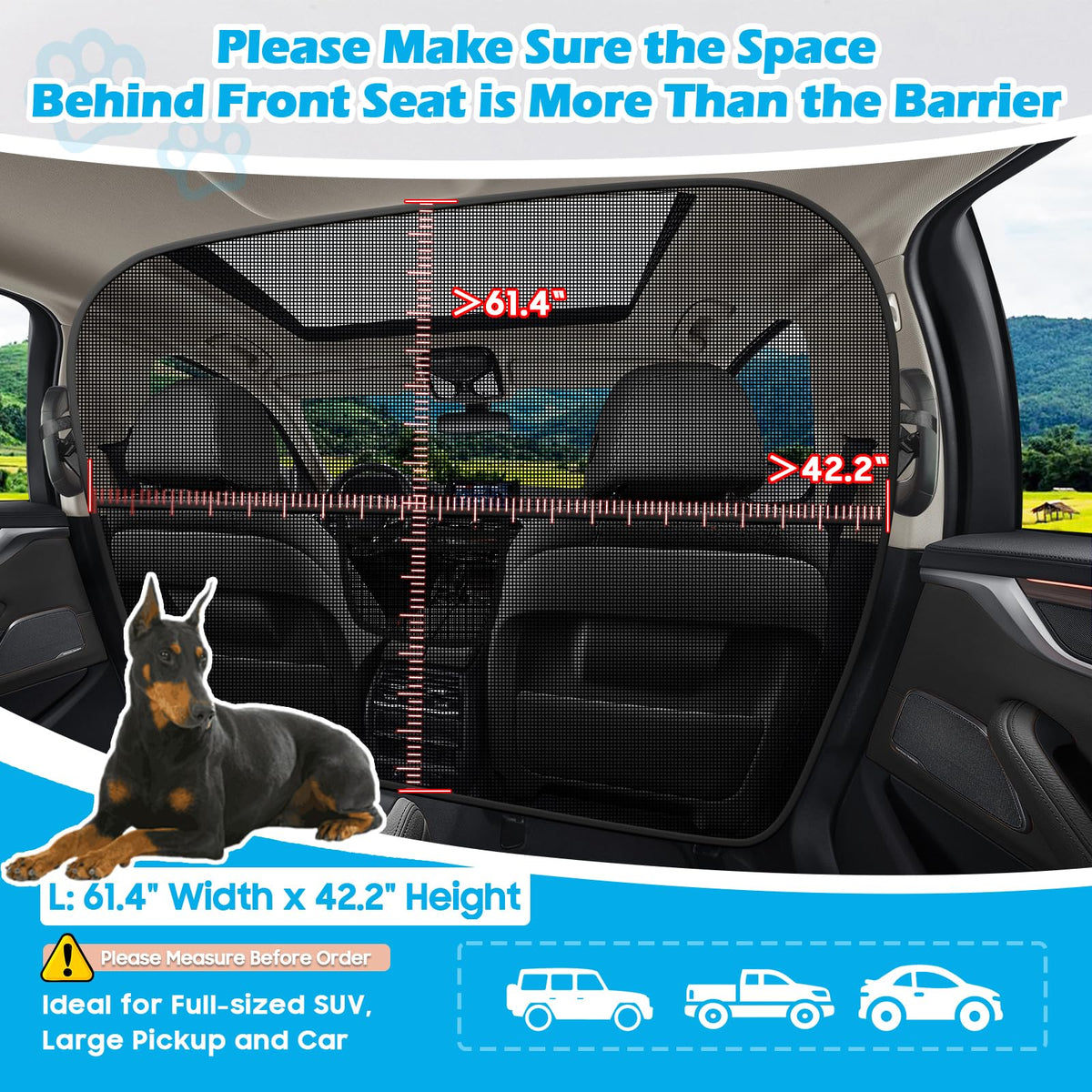 Automiim Dog Car Barrier Behind Front Seat, 61.4'' Wide Car Pet Barrier One-Piece Design, Dog Car Divider Back Seat Barrier For