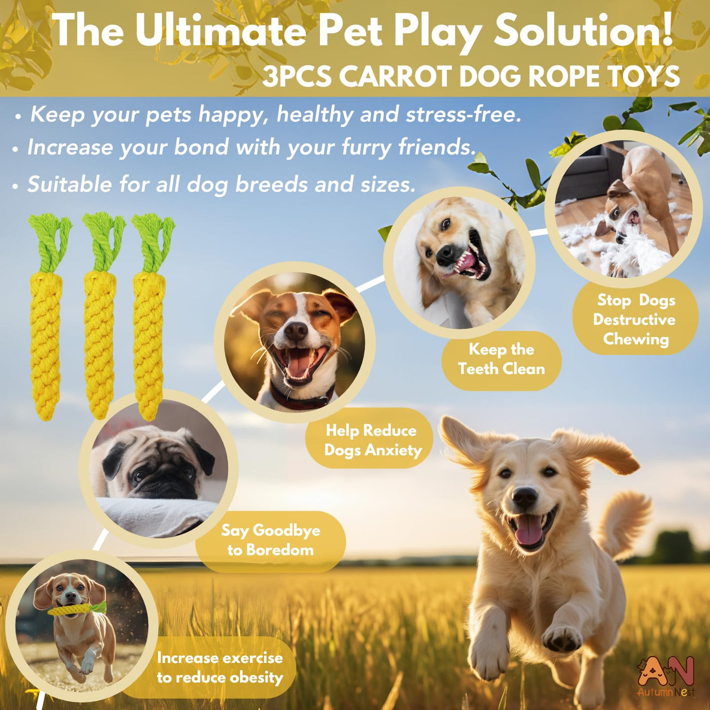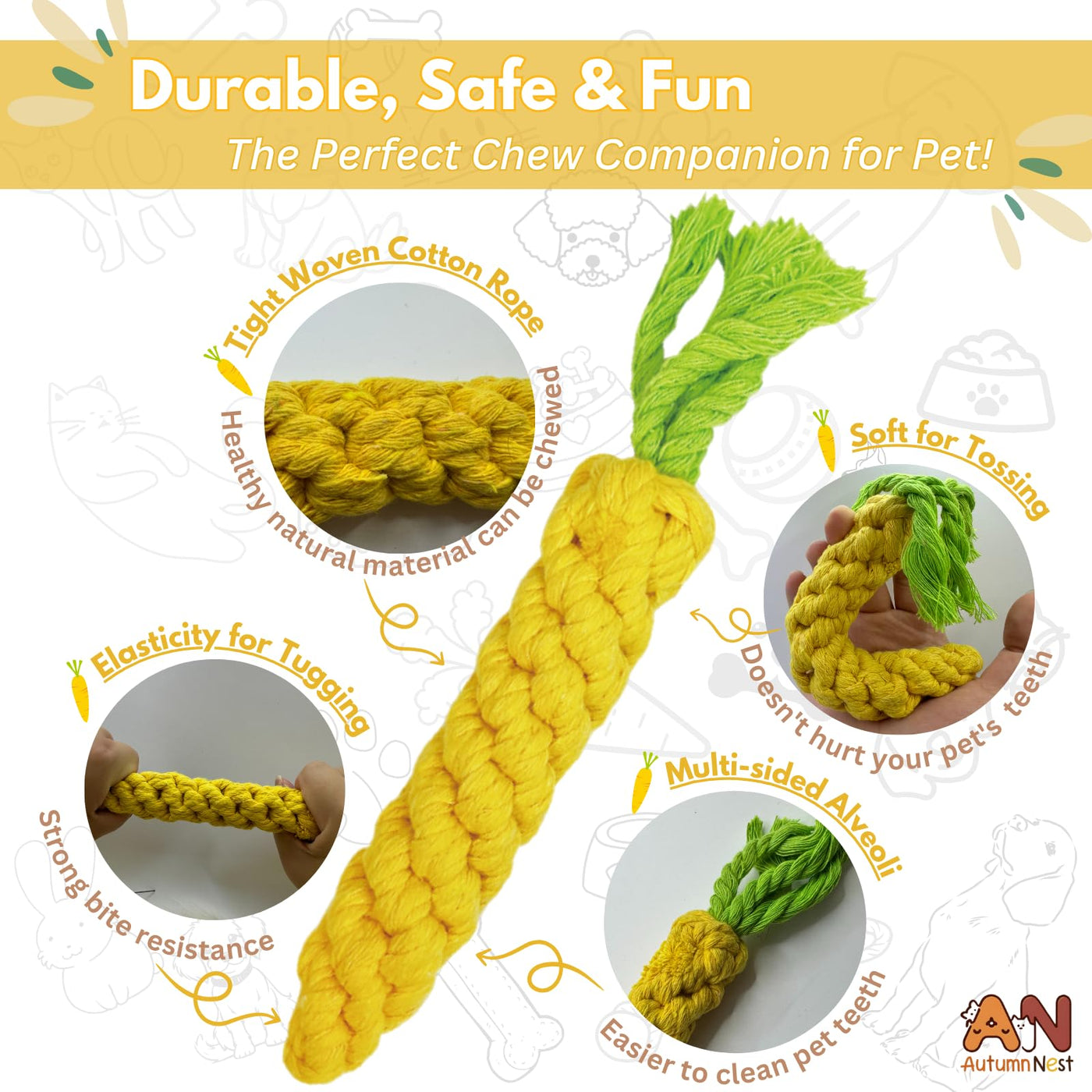 Autumnnest 3Pcs Woven Carrot Pet Rope Toys Are Designed For Dogs, Cats, Rabbits, And Other Small Pets. Made From High-Quality Braided Cotton, These Chew Toys Are Safe, Durable, And Perfect For Teething Puppies Or Playful Pets. The Fun Carrot Shape And Bright Colors Make Them Visually Appealing To Pets, And They Serve As A Great Tool For Cleaning Teeth, Massaging Gums, And Promoting Overall Dental Health. Suitable For Pets Of All Sizes, These Toys Provide Hours Of Entertainment While Helping To Prevent Destructive Chewing Habits.