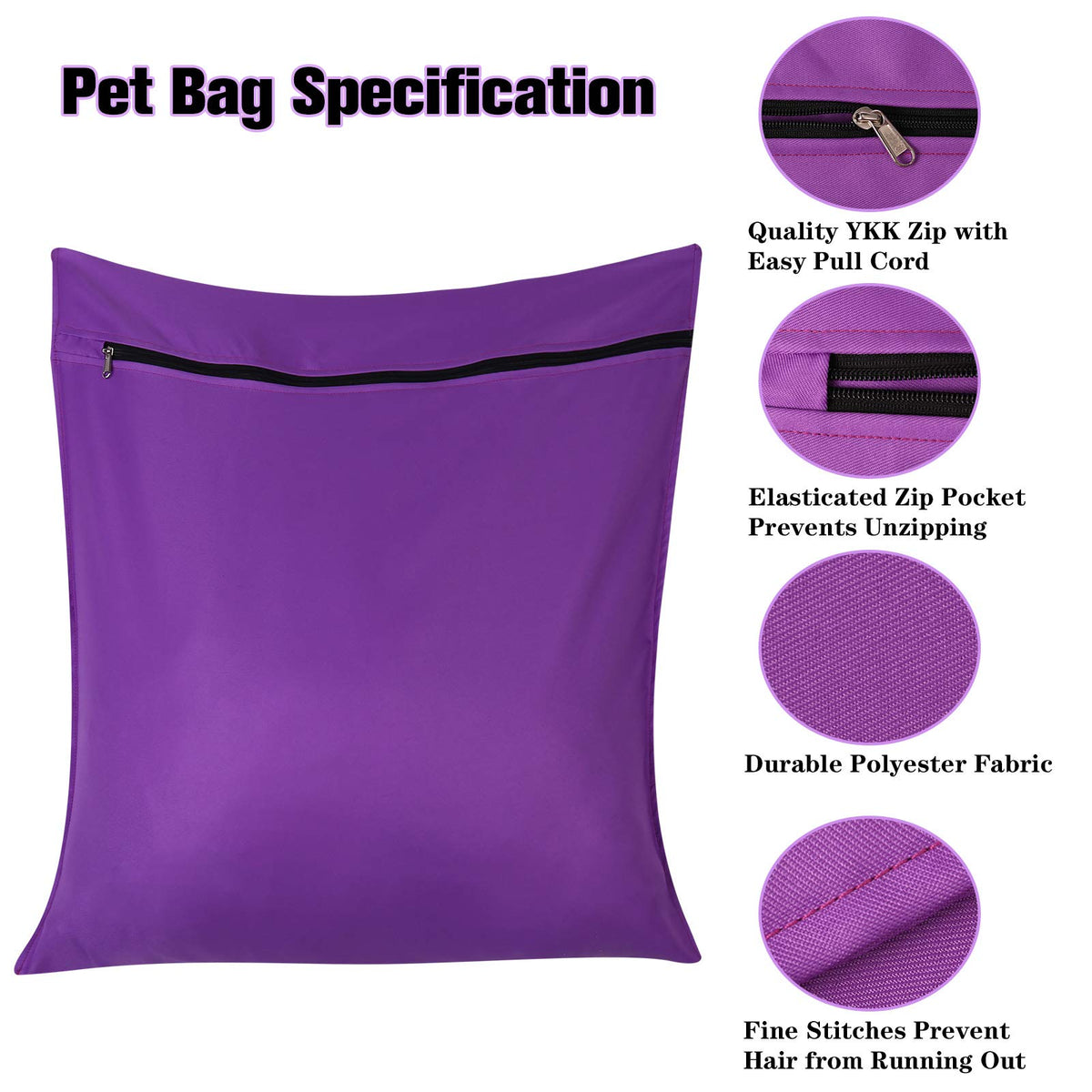 Specification: * Material: Terylene Fabric * Color: Purple, Orange, Beige, Lake Blue * Packaged: 1 Pack Pet Laundry Bag Why Choose Us: - High Quality Material: Our Laundry Bag Is Made Of Terylene Fabric, Which Ensures That The Hair Of The Laundry Bag Will Not Be Thrown Out During The Washing Process, Prevents The Washing Machine From Clogging, Bags Protect Your Garments From Tangling, Snagging, Or Pulling In Washer Or Dryer. - Size: 60*70Cm, Suitable For Laundry Blouse, Hosiery, Stocking, Underwear Even Pet Wear. Great At Preventing Pet Hair Blocking Filters And Transferring On To The Next Wash Of Clothes. Placing Items Into The Pet Laundry Stops Damage To Your Machine With Metal On Metal Contact. - Ideal Pet Supplies: Makes It Easy To Put The Pet Bed Cover, Towels And Many Other Pet Items In The Laundry Bag At Home Straight Into The Washing Machine And Helps To Keep Cleaner For Longer While Extending Their Life By Stopping Ingrained Dirt And Hair. - Perfect Design: Premium Smooth Zipper, Good Quality, Zipper Will Not Open When Washing And Drying, Zipper Cover For Extra Protection, No Rust. The Laundry Bag Is Closely Sewn, Excellent Workmanship, Effectively Prevents The Thread From Running Out And Reusable, Soap And Water Easily Through The Mesh For Optimal Cleaning.