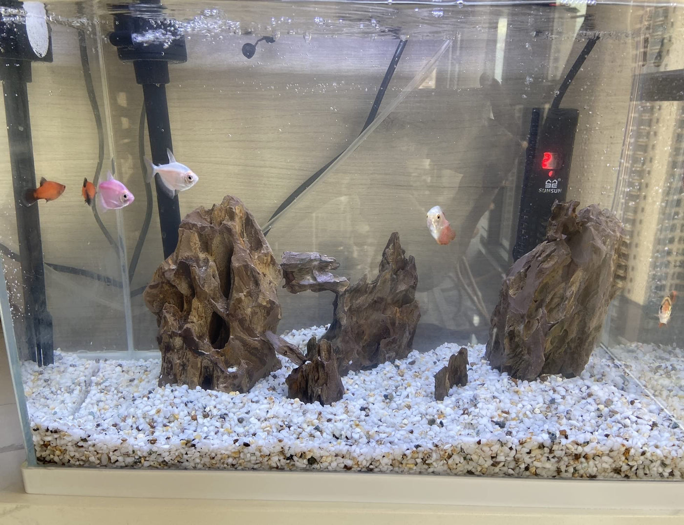 This aquarium stone set is suitable for 2 to 10 gallon aquariums, this aquarium rock aquascape set makes your aquarium more natural. Provide safe and beautiful rocks for your aquarium, ideal for planted tanks. It can be used to hold plants and mosses and create hiding places for shrimp and small fish. Dragonite is clay-like and a quick cleaning is necessary before placing it in the aquarium.
