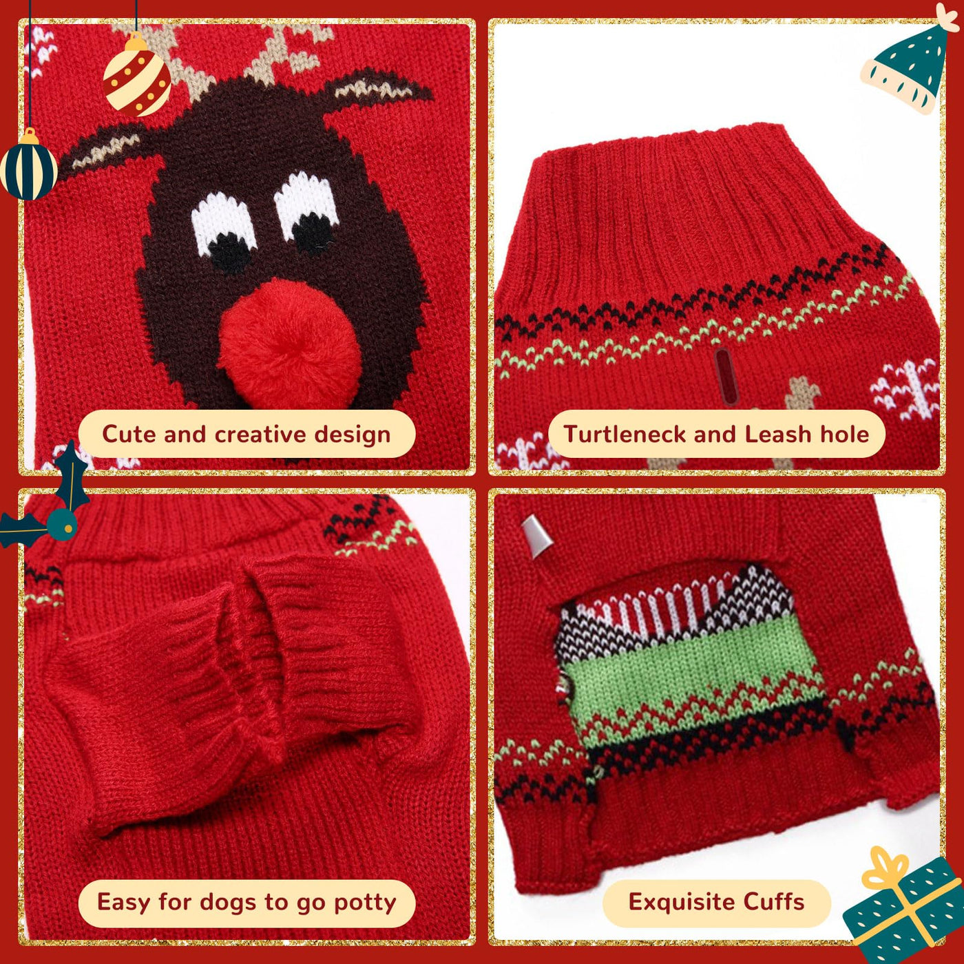 Axiijgl Cute Reindeer Dog Sweater For Small Dogs - Turtleneck Cat Christmas Outfit