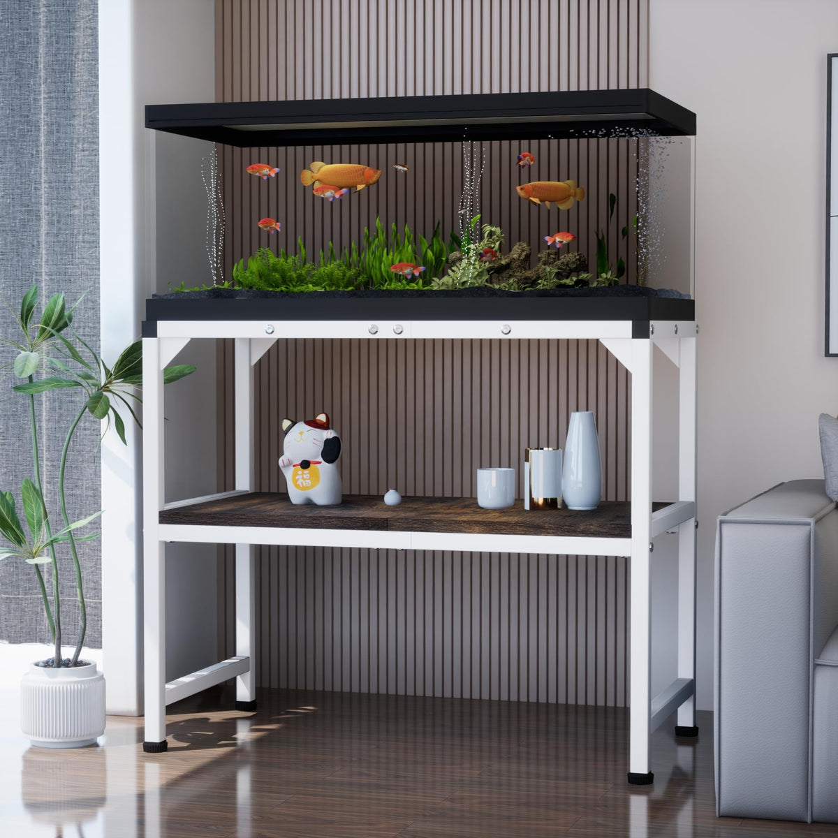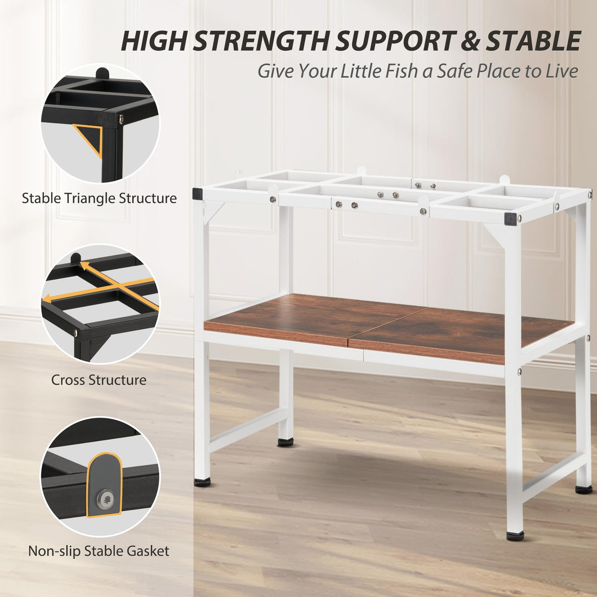 Azaeahom fish tank fits into a 10-20 gallon aquarium and can hold up to 350 pounds; The upper level displays the fish tank, and the lower level stores the storage to maximize the use of space.
