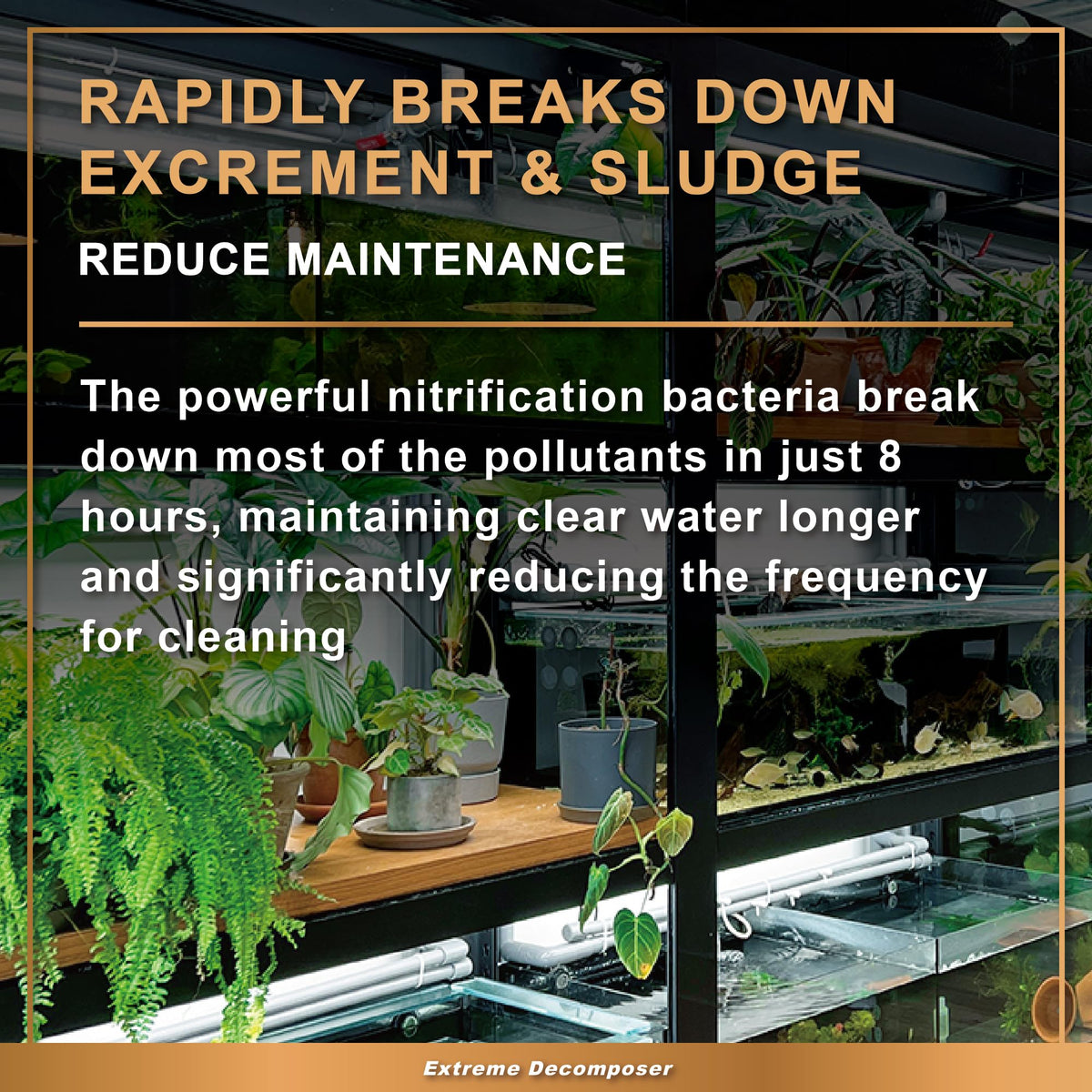 AZOOPLUS BIO XD Extreme Decomposer Nitrifying Bacteria for Freshwater and saltwater tanks, restores natural water quality & recreates natural environment. Highly active natural multi-strain nitrifying bacteria, no activation required. Starts working right after addition. Decomposes excrement and toxic substances, reduce frequency for cleaning fish tanks.