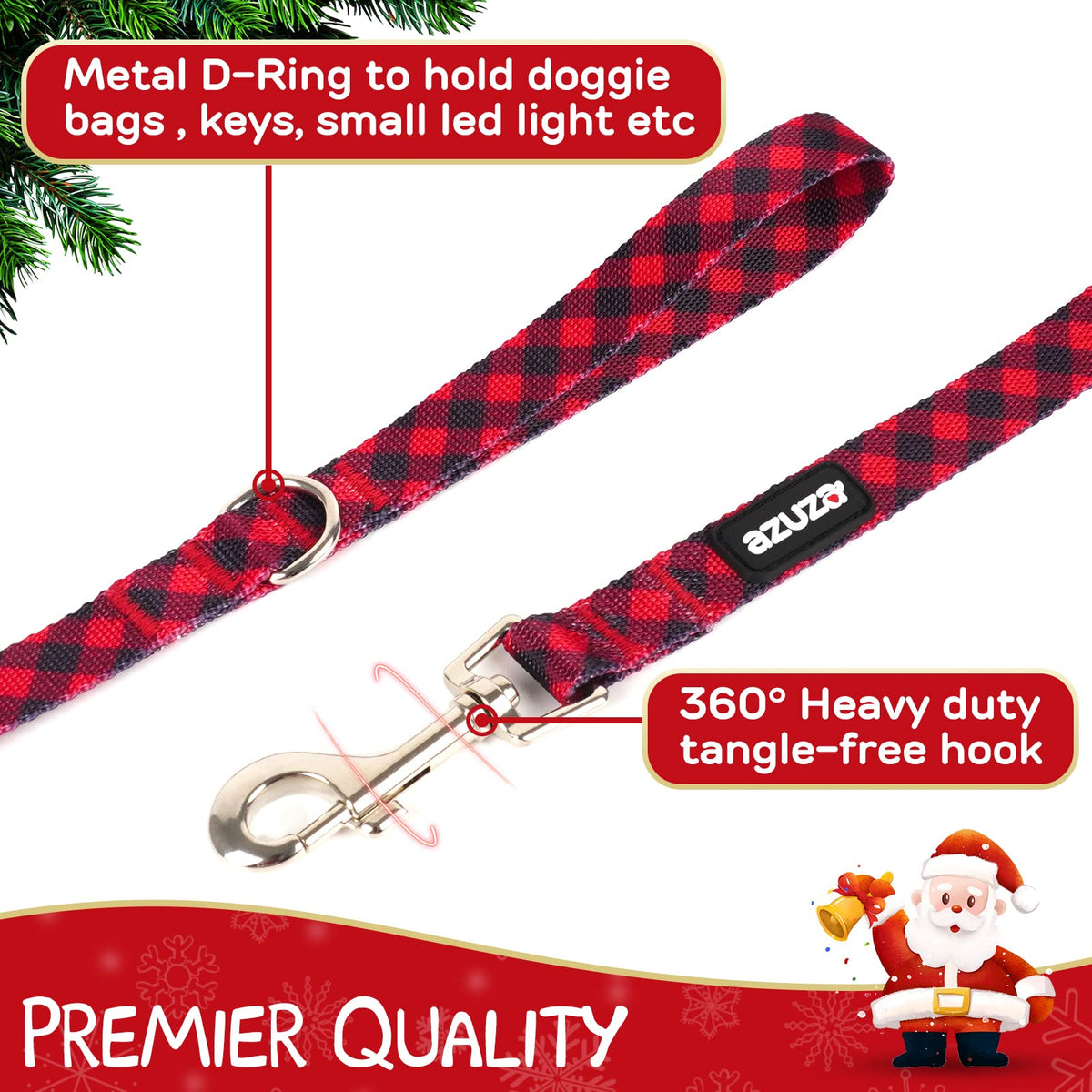 Azuza 3 Pack Christmas Nylon Dog Leashes Strong & Durable Buffalo Check Basic Dog Leash With Easy To Use Collar Hook For Large D