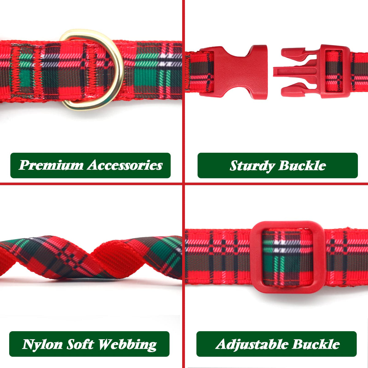 High Quality Christmas Dog Collar - Bright red and green plaid ribbon sewn on rich red color nylon webbing; ecofriendly plastic buckles with chrome coated metal D ring enhances the durability .