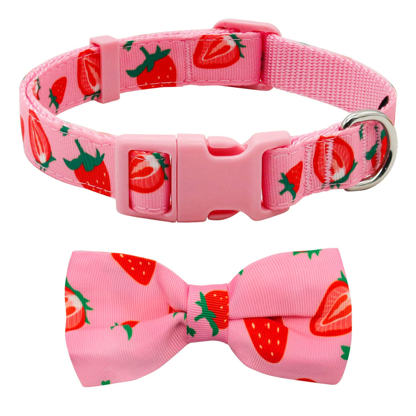 Azuza Dog Collar Bow Tie, Lovely Pink Dog Collars With Bowtie Large Dogs
