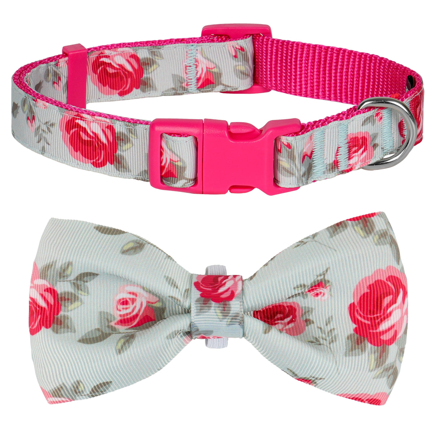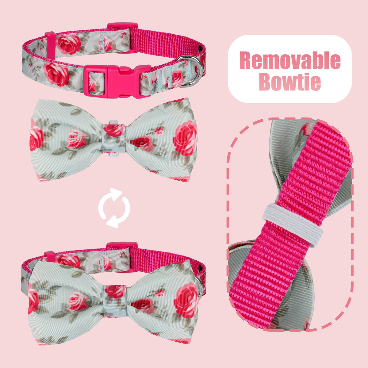 Azuza Dog Collar With Bow Tie, Soft And Comfortable Adjustable Bowtie Dog Collar For Small Dogs (S, Camellia Flower)
