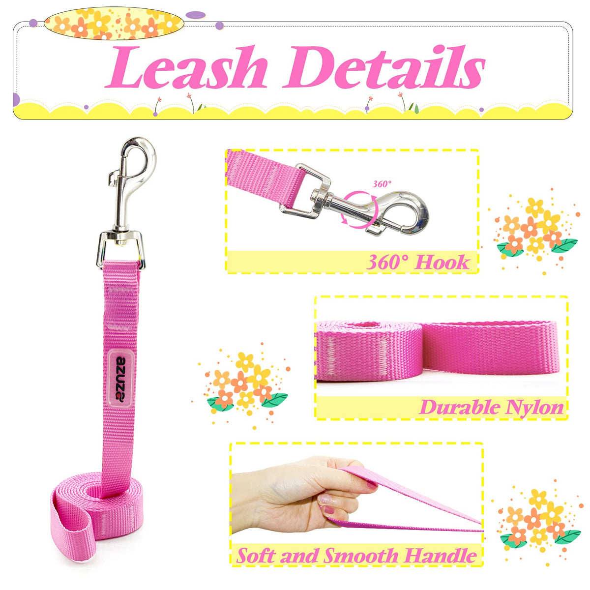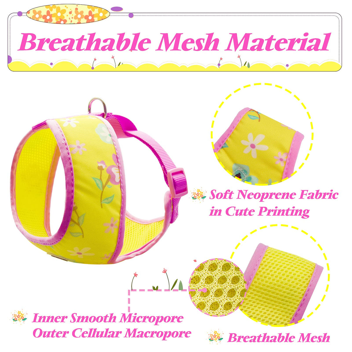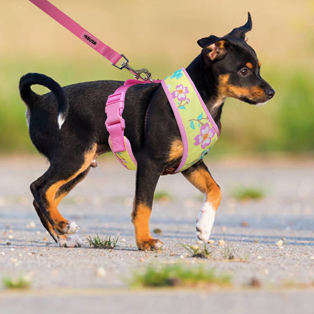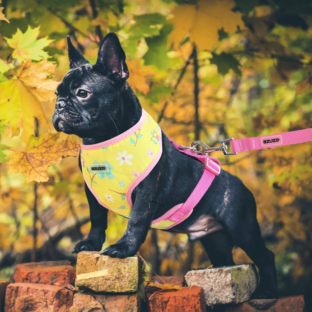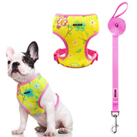 Azuza Dog Harness With Leash Set Cute Lemon Pineapple Flower Pattern Head-In Small Dog Harness Vests No Pull Comfort Padded Dog