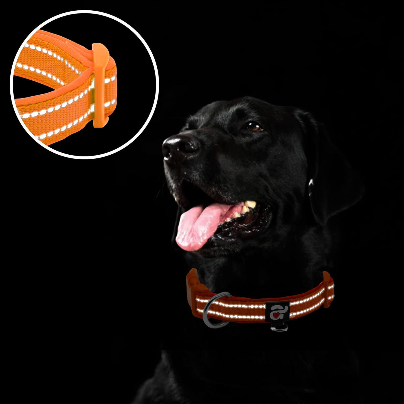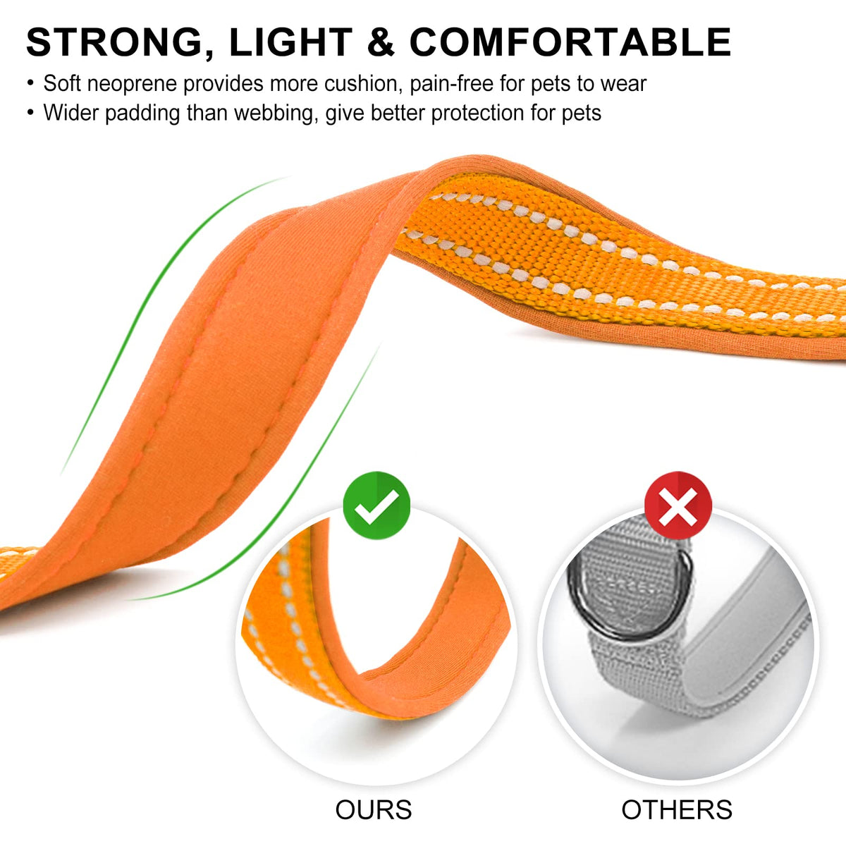 Azuza Reflective Dog Collar, Soft Neoprene Padded Pet Collar With Id Tag Ring, Adjustable For Large Dogs,Orange,L
