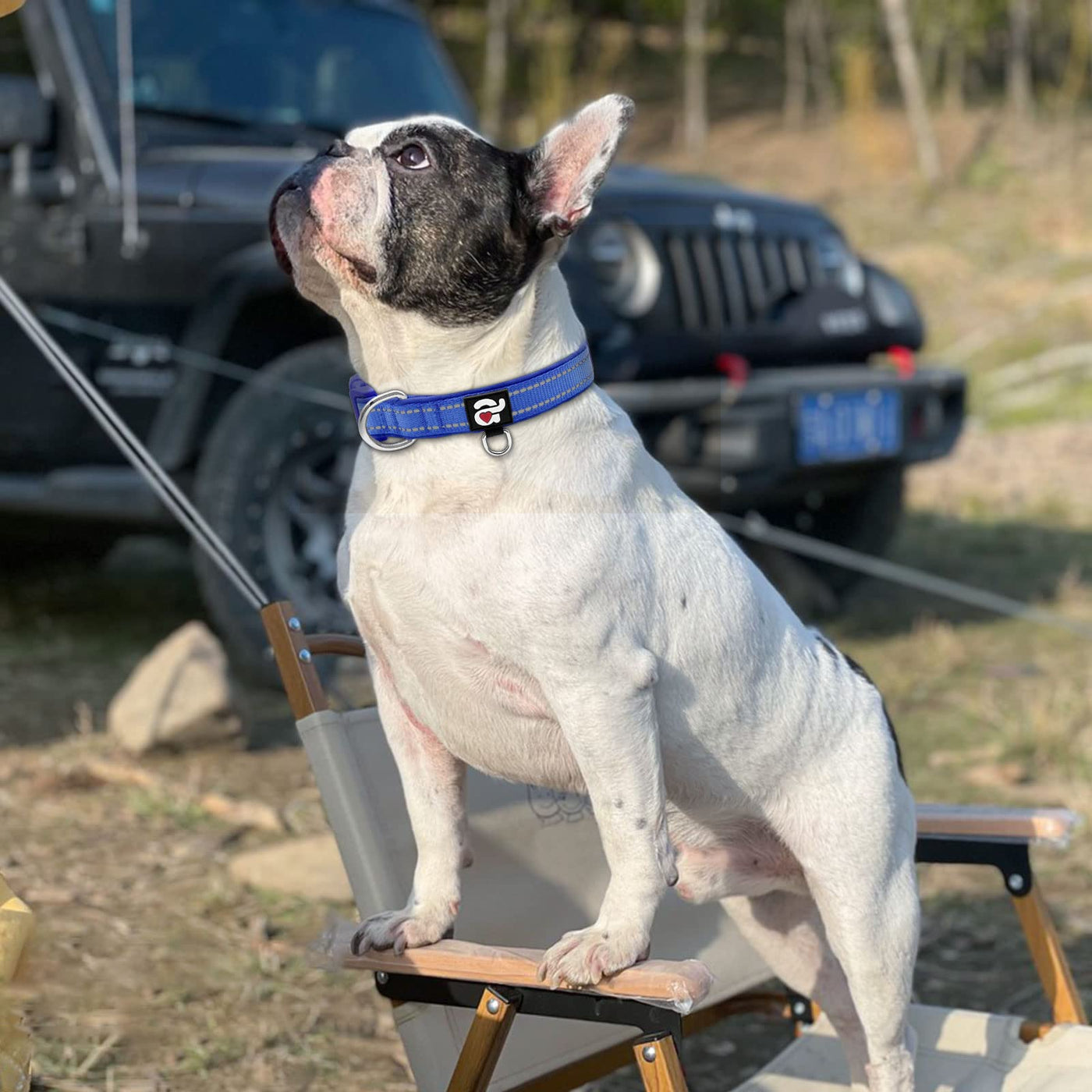 Azuza Reflective Dog Collar,Soft Neoprene Padded Pet Collar With Id Tag Ring,Adjustable For Medium Dogs,Royal Blue,M