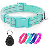 Azuza Reflective Dog Collar With Airtag Holder, Soft Neoprene Padded Pet Collar With Id Tag Ring, Adjustable For Small Dogs,Teal