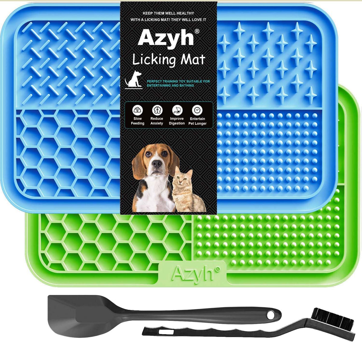 Azyh Licking Mat For Dogs & Cats 2 Pack, Slow Feeder Lick Pat For Large Dogs And Puppies, Anxiety Relief Dog Toys Feeding Mat For Butter Yogurt Peanut, Pets Bathing Grooming Training Calming Mat