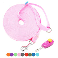 Baapet 15 Ft 20 Ft 30 Ft 50 Ft 100 Ft Long Dog Training Leash For Dog Training, Play, Camping, Or Backyard Lead With Training Clickers For Small, Medium And Large Dogs Or Cats (20 Feet, Pink)