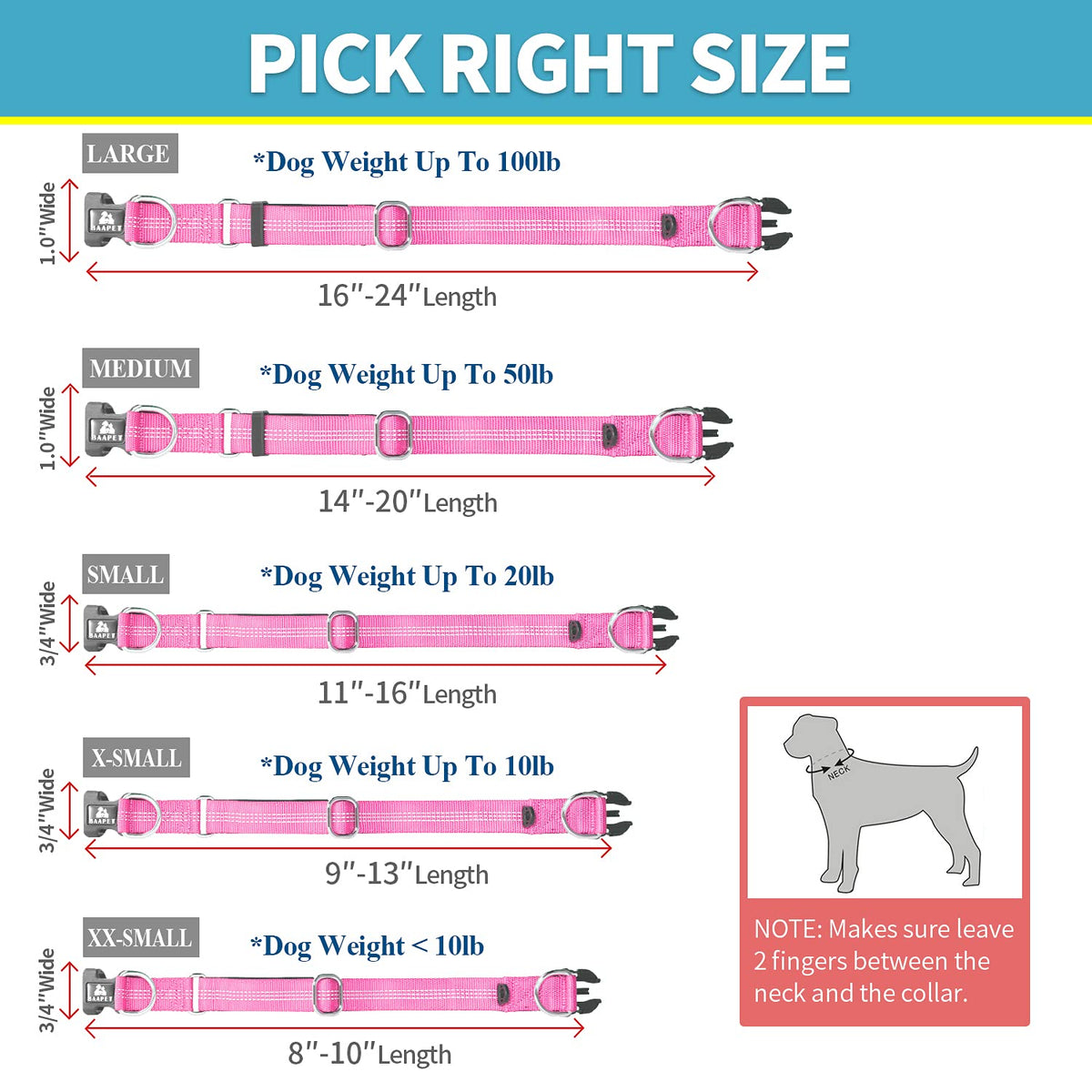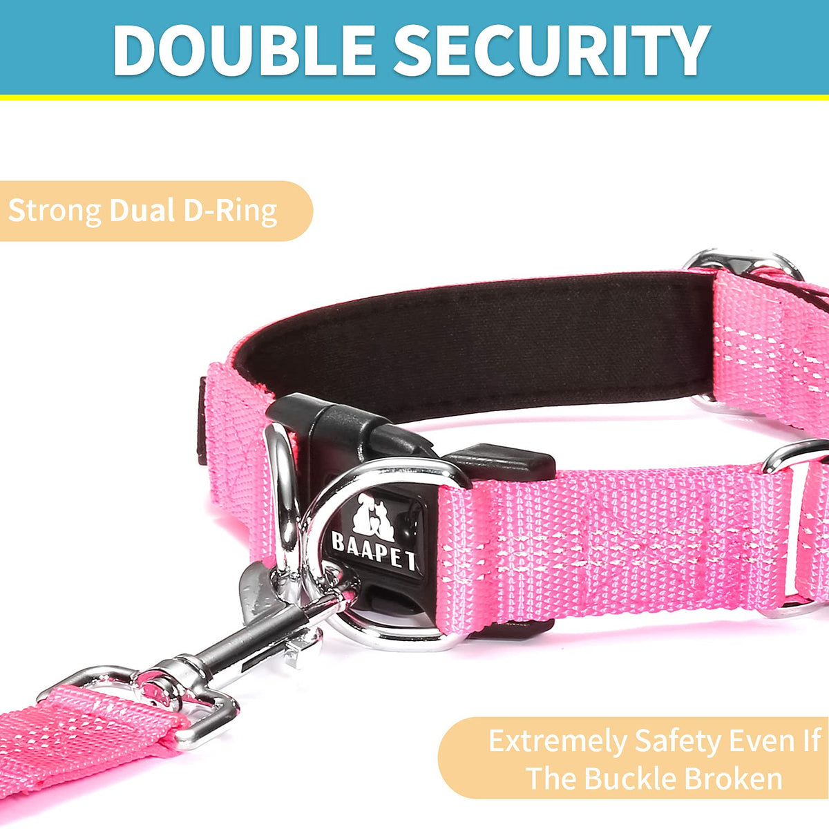 BAAPET Pink Dog Collar for Small to Large Dogs, XS - 3/4 x (9-13), Double Security Dual D-Ring with ID Tag Hanger