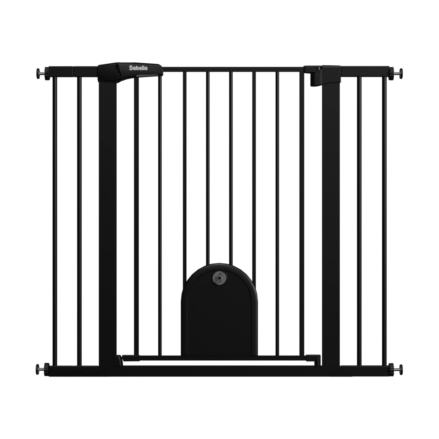 Babelio 36' Tall Auto Close Baby Gate With Small Cat Door, 29-43' Metal Cat Gate For Doorway, Stairs, House. Easy Walk Thru Dog Gate With Pet Door, Includes 4 Wall Cups And 3 Extension Pieces, Black