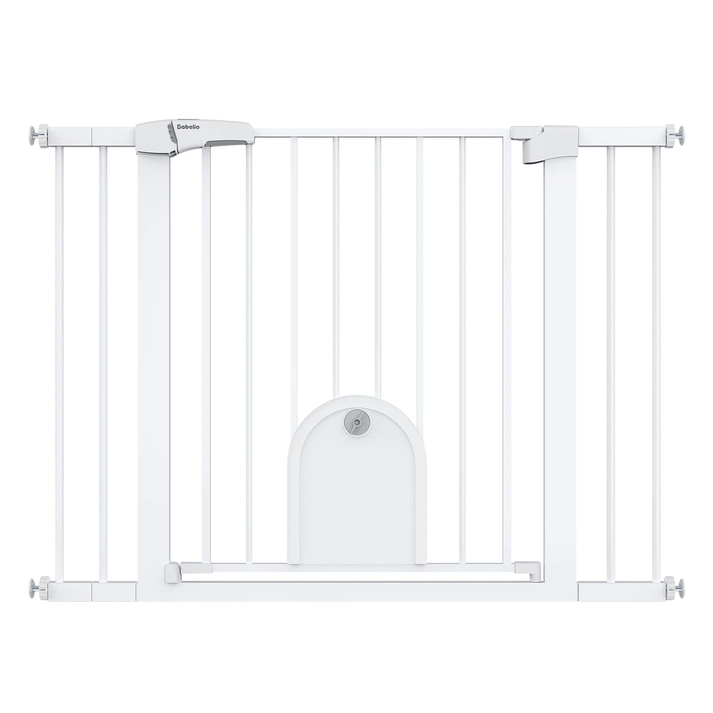 Babelio Auto Close Baby Gate With Cat Door,29-43'' Metal Gate For Doorway,Stairs, House,Easy Walk Thru With Pet Door,Includes 4