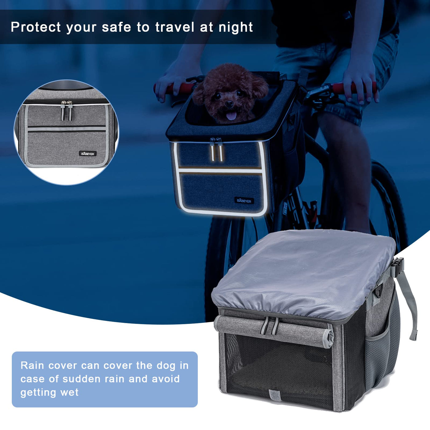 Babeyer Dog Bike Basket, Soft-Sided Dog Bike Carrier With 4 Mesh Windows For Small Dog Cat Puppies - Grey