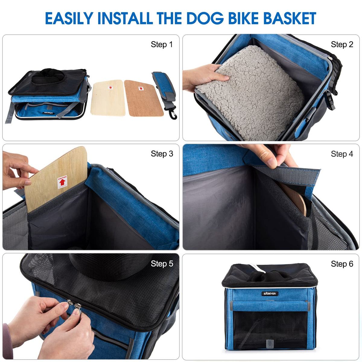 Q: How do I install the dog bike basket on my bicycle?A: Installation is simple with the quick buckle design that attaches directly to the bicycle handlebar, along with a powerful Velcro strap on the back for added stability.