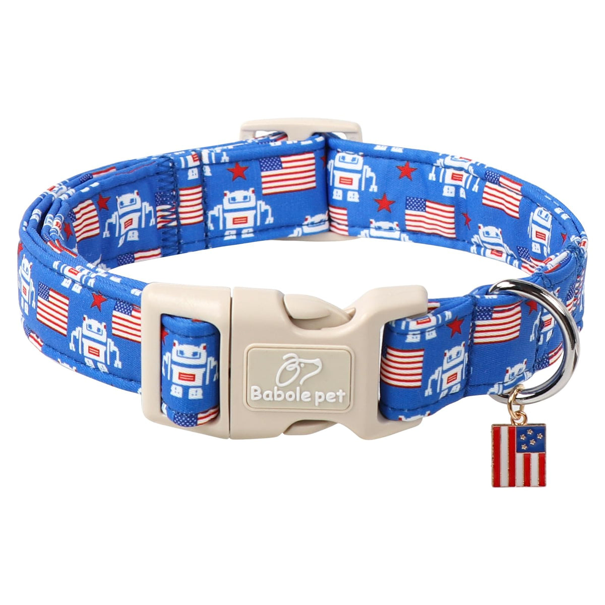 Babole Pet 4Th Of July Dog Collar, Robot Star-Spangled Patriotic Dog Collars For Small Dogs, Adjustable Lightweight Quick-Releas