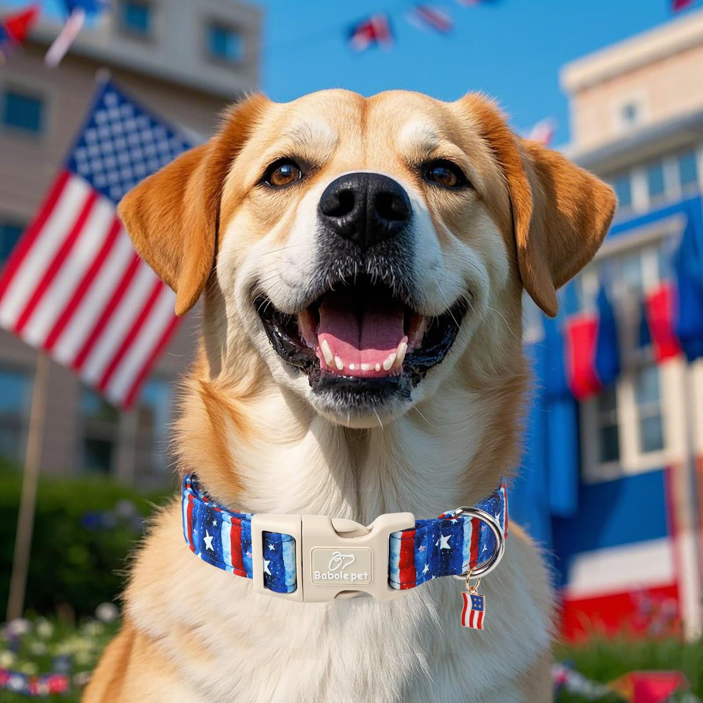 Babole Pet 4Th Of July Dog Collar, Stars & Stripes Patriotic Dog Collars For Small Dogs, Adjustable Lightweight Quick-Release Bu