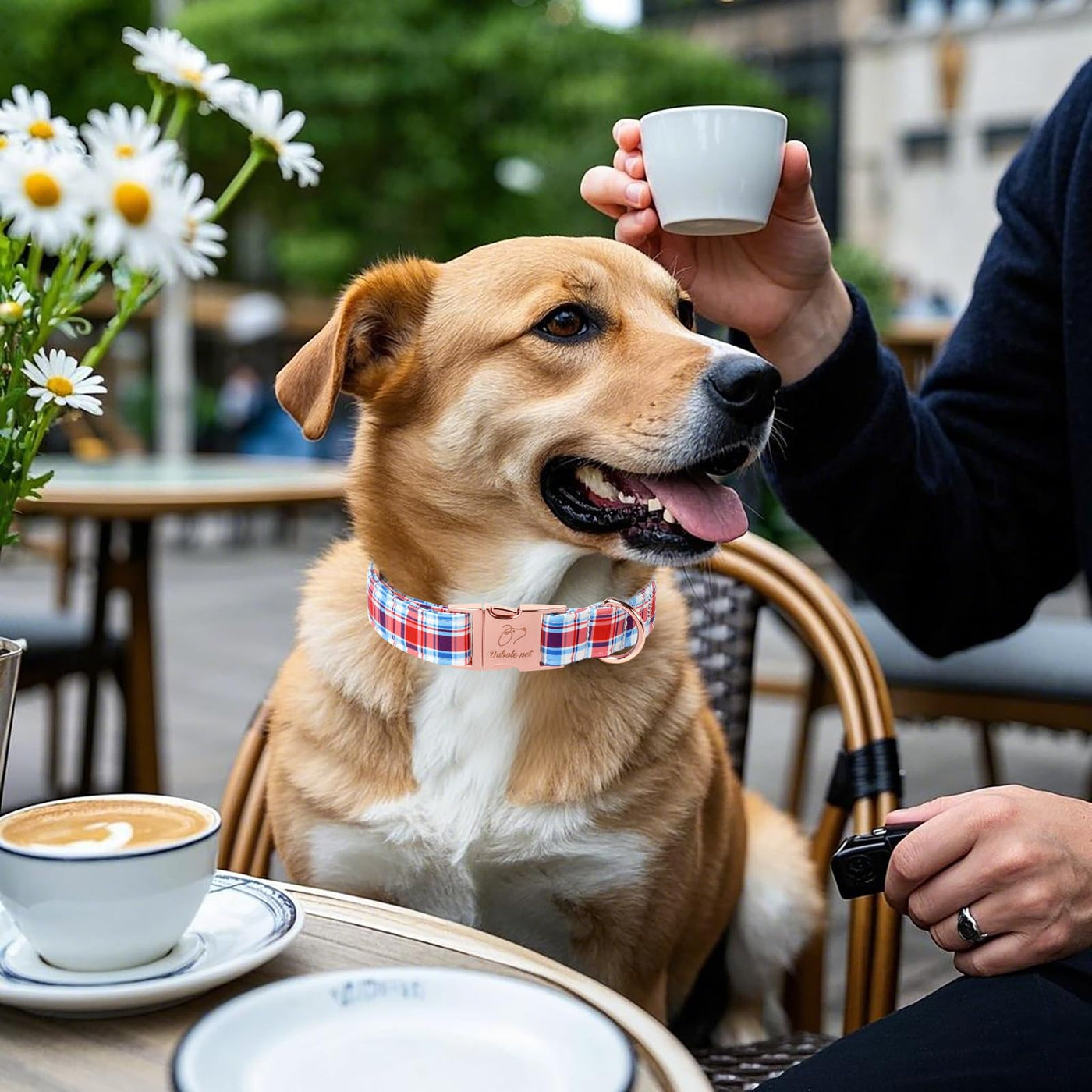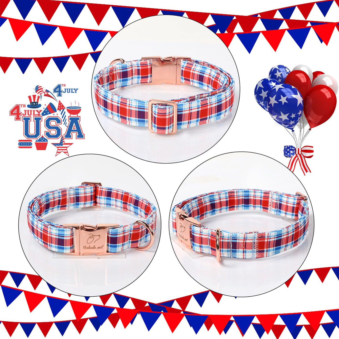 Babole Pet Adjustable Plaid Boy Dog Collar - Classic Boy Dog Plaid Collars For Small Dogs, Durable Red White Blue Heavy Duty Met