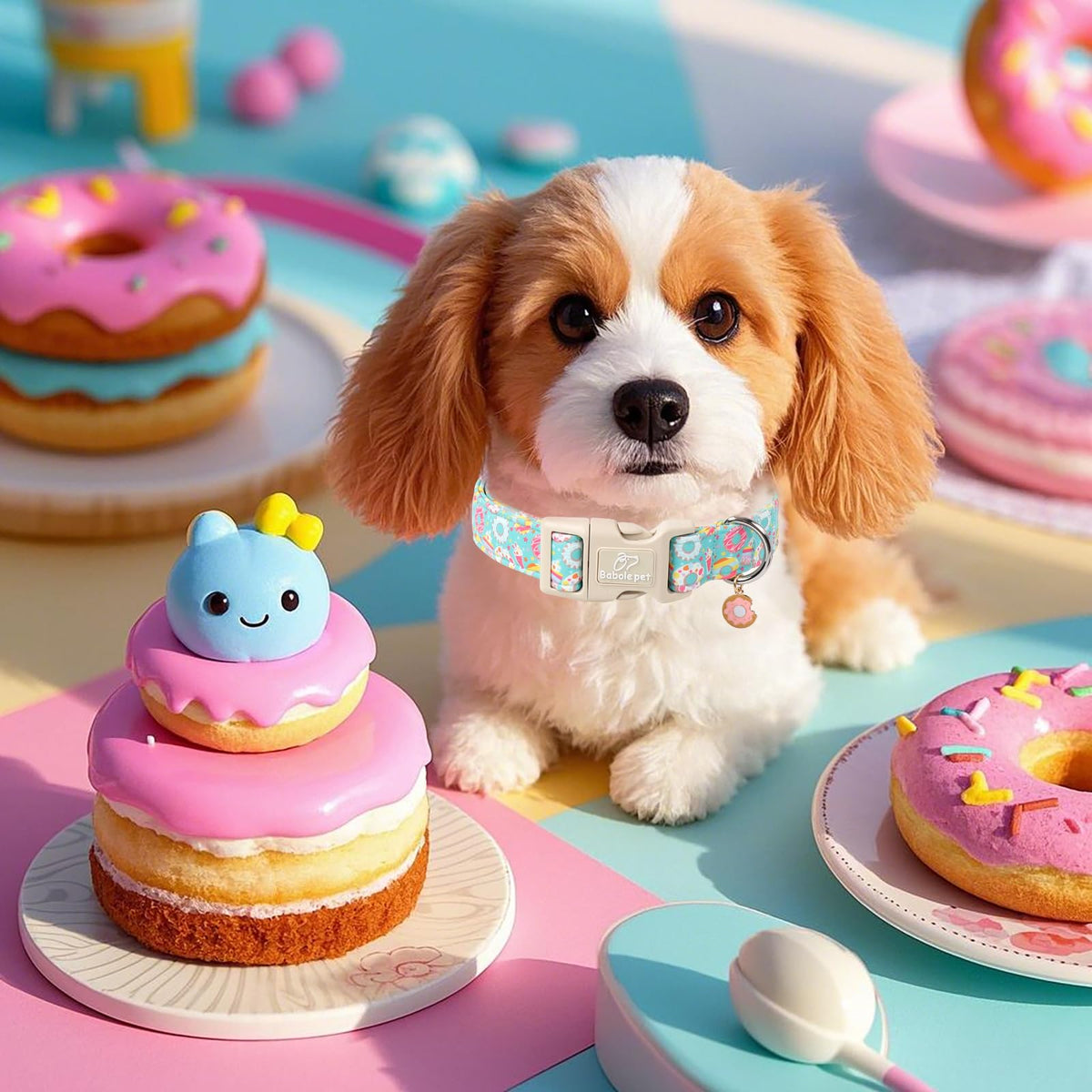 Babole Pet Adjustable Summer Dog Collar, Cute Mint Dessert Dog Collars For Puppy & Tiny Dogs, Lightweight Quick-Release Buckle C