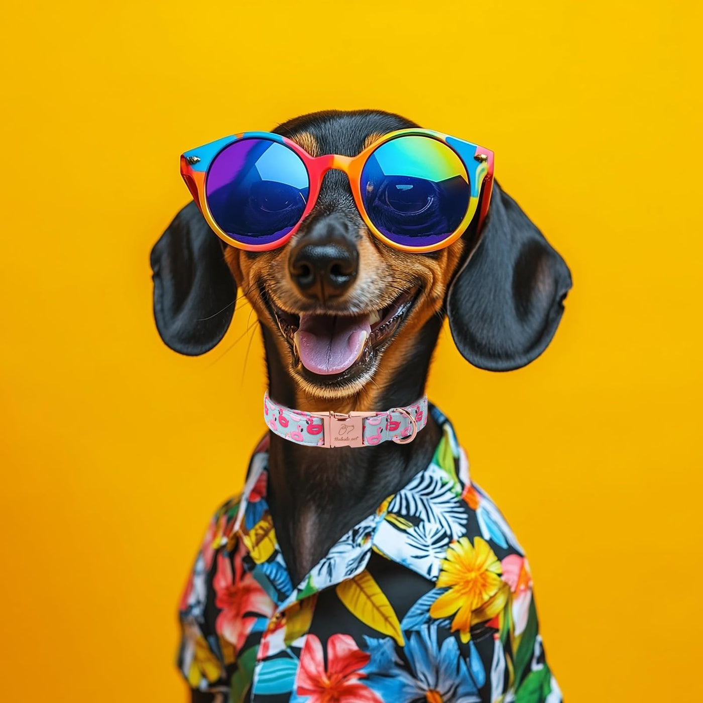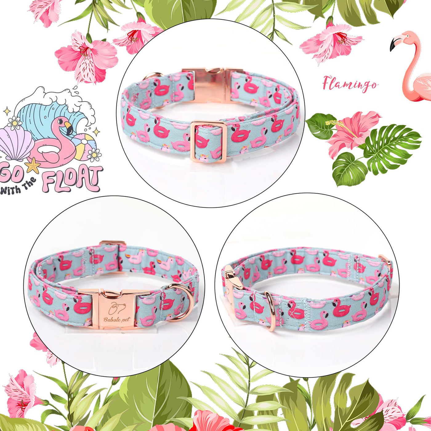 Babole Pet Adjustable Summer Dog Collar - Cute Pink Flamingo Dog Collars For Medium Dogs, Durable Boy Girl Dogs Heavy Duty Metal