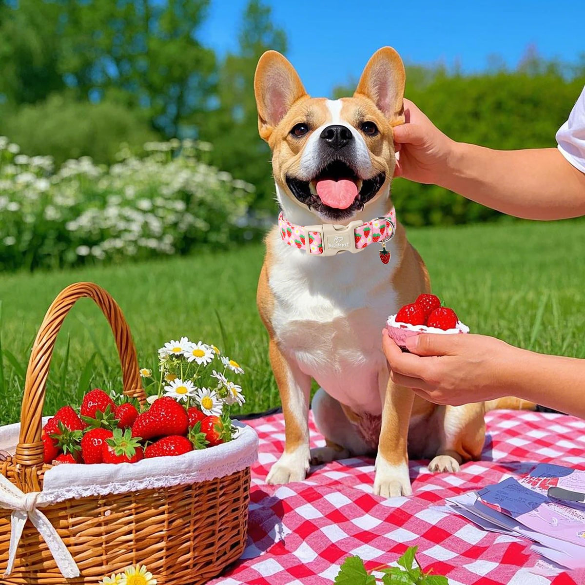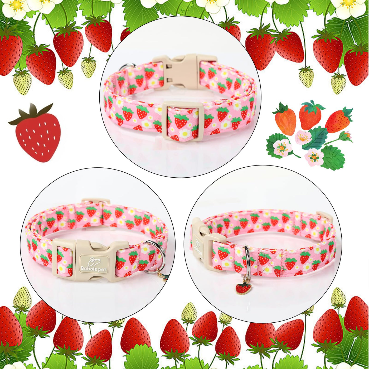 Babole Pet Cute Spring/Summer Dog Collar, Adjustable Pink Strawberry Dog Collars For Small Dogs, Lightweight Quick-Release Buckl