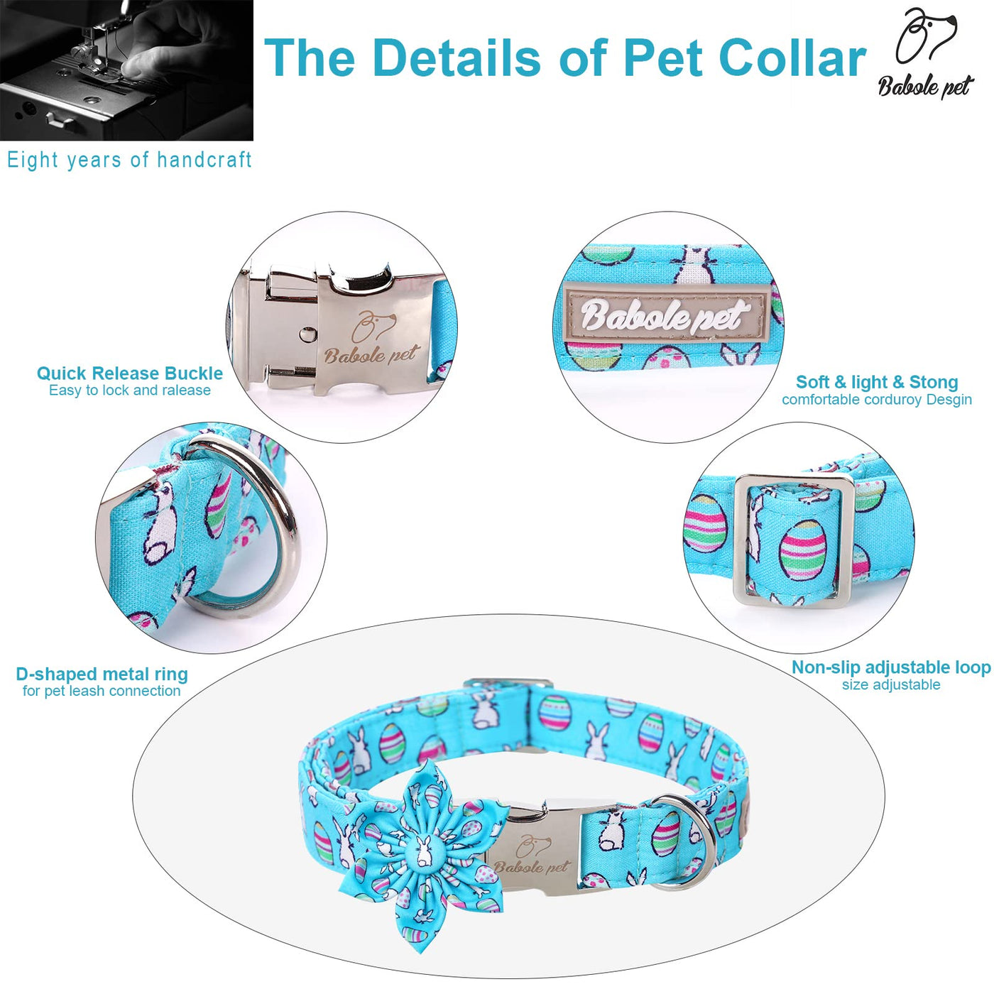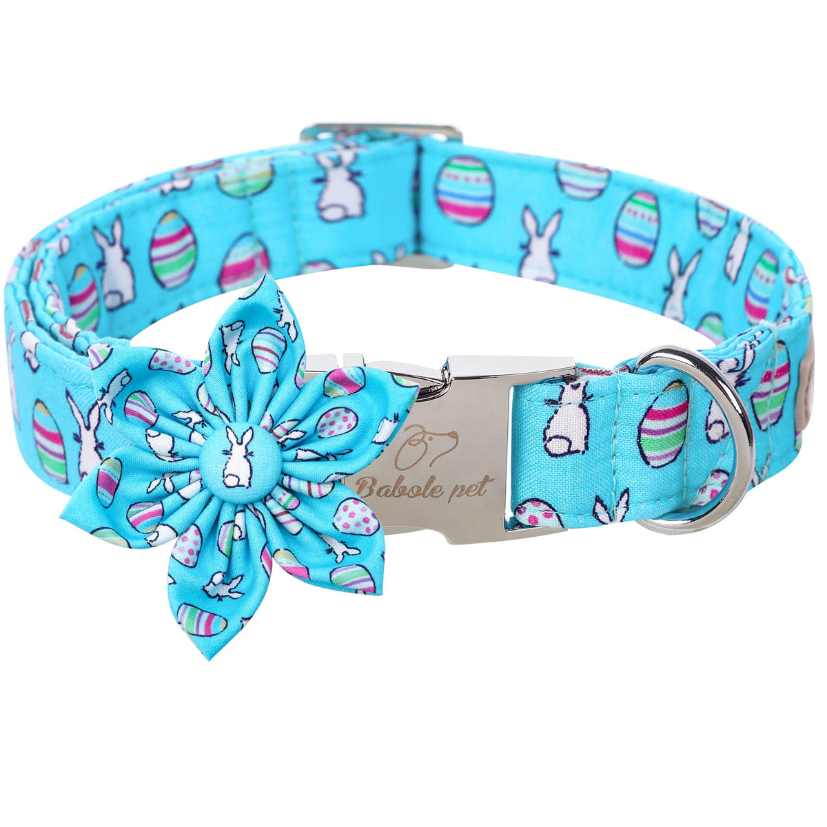 Babole Pet Dog Collar Easter Gift With Flower Tie, Rabbit Egg Male Dog Collar With Safety Metal Buckle Adjustable Puppy Collars For Small Medium Large Boy & Girl Dog,Xl-Neck 16'-26'