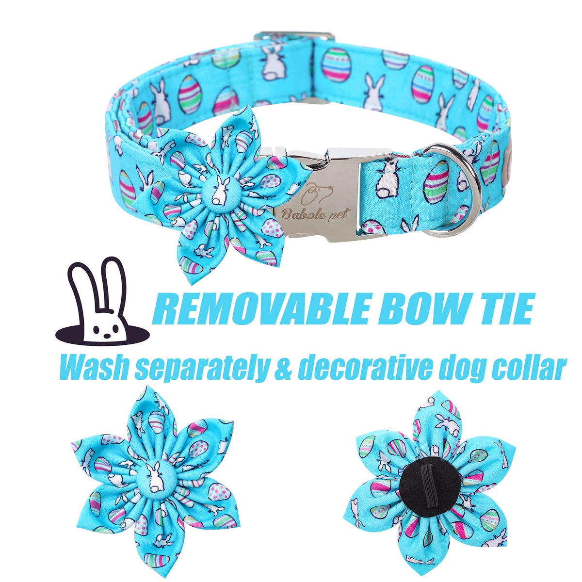 Babole Pet Dog Collar Easter Gift With Flower Tie, Rabbit Egg Male Dog Collar With Safety Metal Buckle Adjustable Puppy Collars For Small Medium Large Boy & Girl Dog,Xs-Neck 8'-12'
