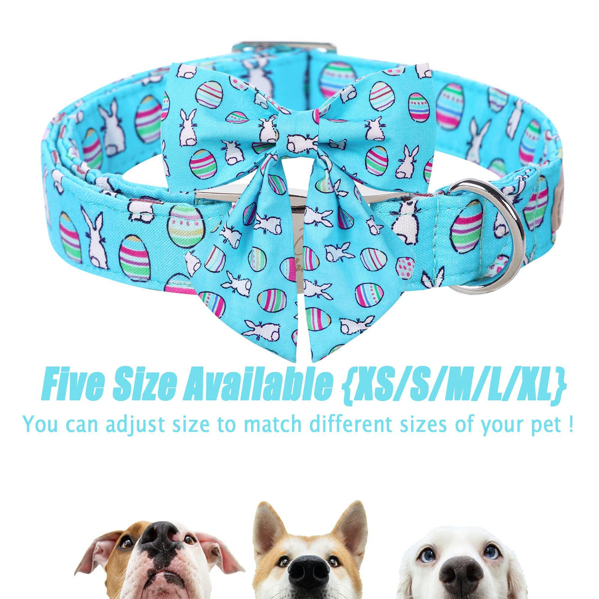 Babole Pet Dog Collar Easter Gift With Tie, Rabbit Egg Male Dog Collar With Safety Metal Buckle Adjustable Puppy Collars For Small Medium Large Boy & Girl Dog,Xs-Neck 8'-12'
