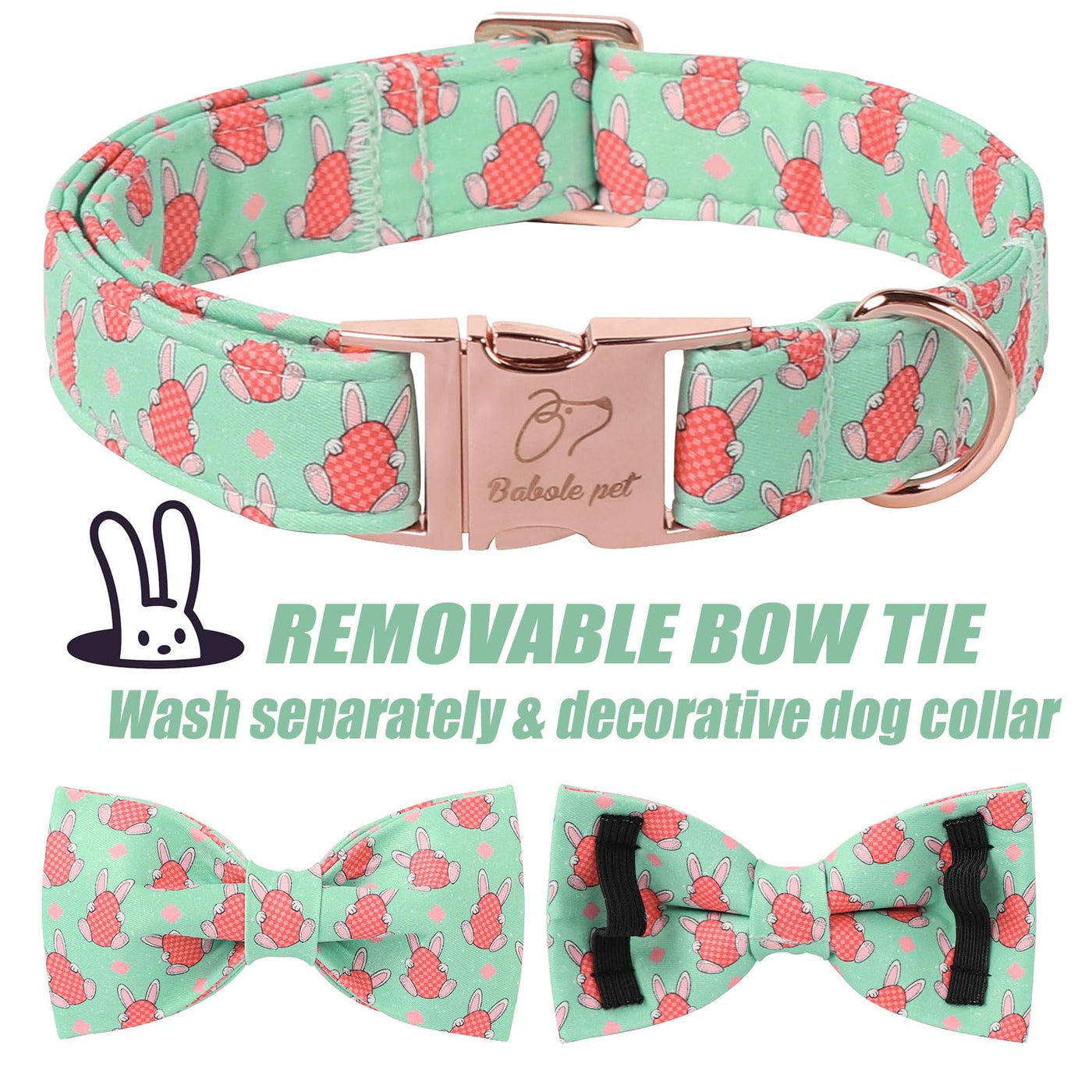 Babole Pet Easter Dog Collar With Bow Tie - Easter Bunny Egg Bowtie Dog Collar Adjustable Heavy Duty Spring Easter Dog Collars F