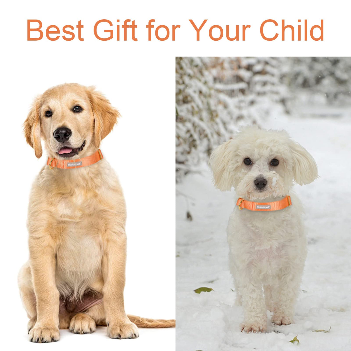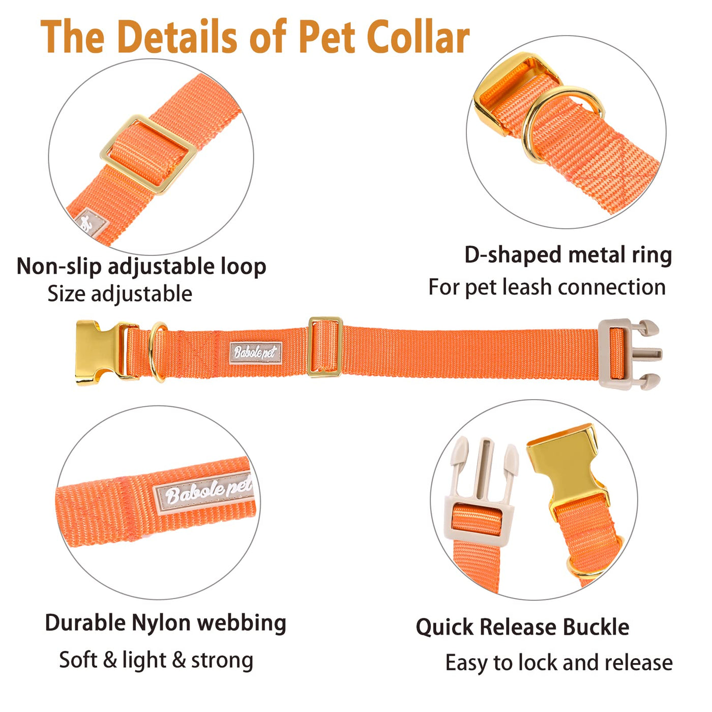 Babole Pet Nylon Dog Collar - Adjustable Orange Soft Webbing Dog Collars For Small Medium Large Dogs Boy Girl Puppy Collar With
