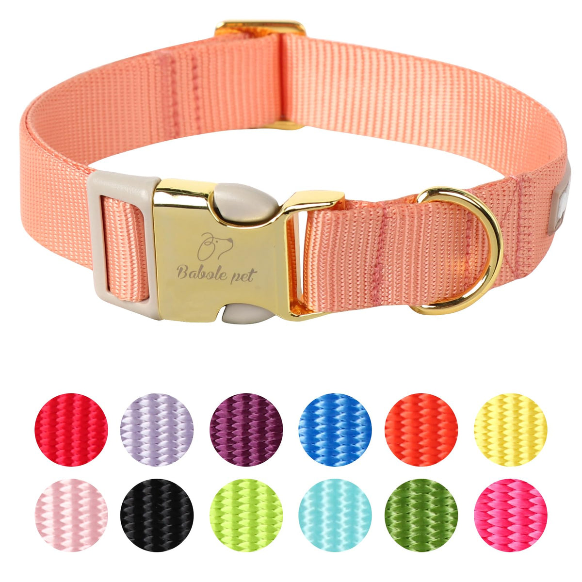 Q: What features make this collar comfortable for my dog?A: The Babole Nylon Dog Collar features a soft nylon fabric that is gentle on your pet's skin, a curved metal buckle for added comfort, and an adjustable non-slip ring to ensure a secure fit without irritation.