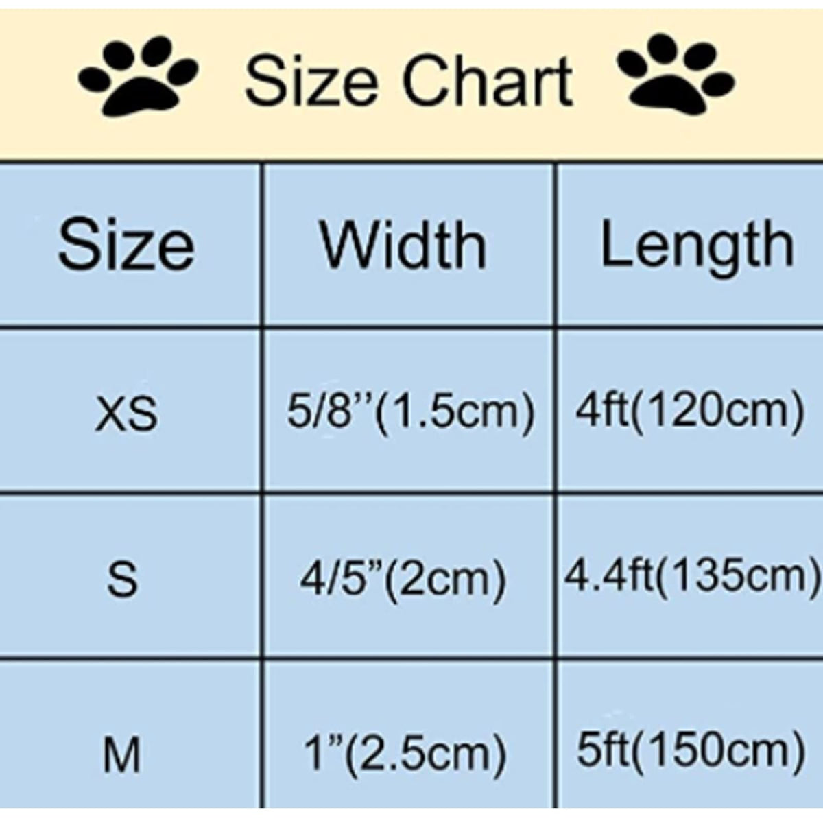 Q: What sizes are available for the Babole St. Patrick's Day Dog Leash?A: The Babole St. Patrick's Day Dog Leash is available in three sizes: XS (5/8in x 4ft), S (4/5in x 4.4ft), and M (1in x 5ft). Please refer to the size chart to select the right fit for your dog.