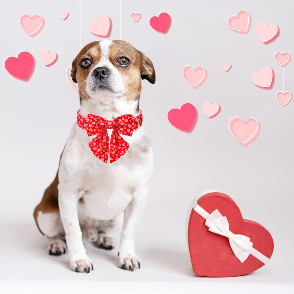 Babole Pet Valentine'S Day Dog Collar With Tie, Pink Red Love Male Dog Collar With Safety Metal Buckle Adjustable Puppy Collars