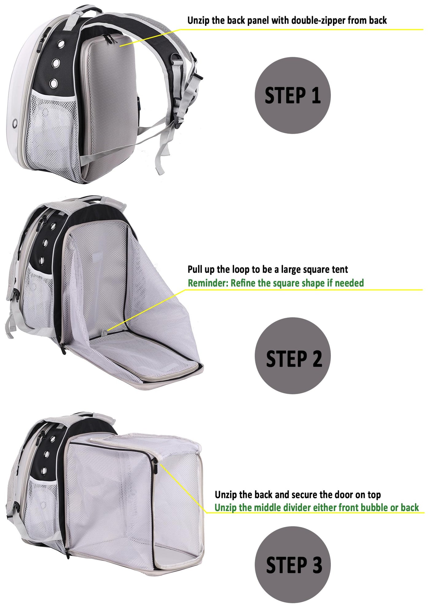 Explore The World In Style And Comfort With Our New Square Back Extension Pet Backpack Carrier! Designed For Cats And Small Puppies Up To 13 Pounds On Your Shoulder, This Innovative Carrier Features A Clear Space Capsule And Transparent Bubble Window, Allowing Your Furry Friend To Enjoy The Sights While You'Re On The Move. The Sturdy Yet Lightweight Construction Ensures A Secure And Comfortable Journey, While The Back Square Extension Allows For Best Ever Ventilation As A Giant Rest Tent While Releasing The Backpack From Your Shoulder. With Adjustable Straps For A Customized Fit, This Carrier Is Perfect For Hikes, Trips, Or Simply Running Errands Around Town. Keep Your Beloved Pet Safe And Close While Experiencing New Adventures Together. Dimensions: 13''W X 16.5''H X 11.5'' D And Extra 16.5'' L Giant Tent While Expanding. Material Is Made Out Of Durable Oxford Polyester.. Weight Capacity: Suggest For Animals Up To 13 Pounds. Please Measure Your Pet And Refer To The Size Guide For The Perfect Fit.