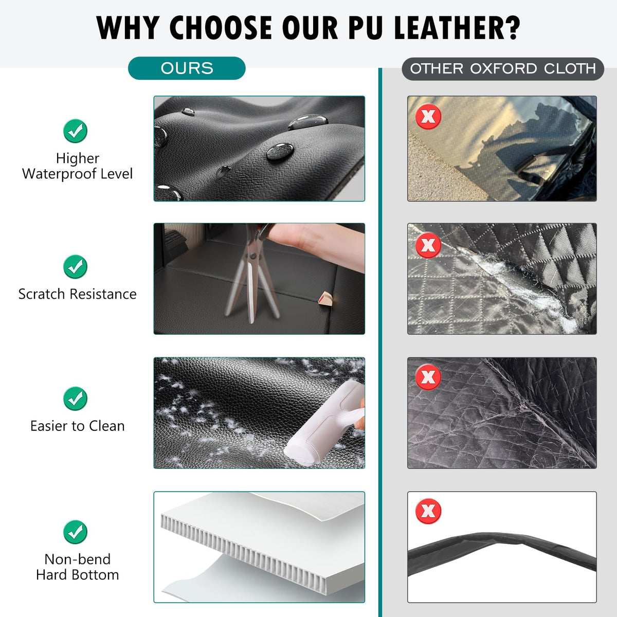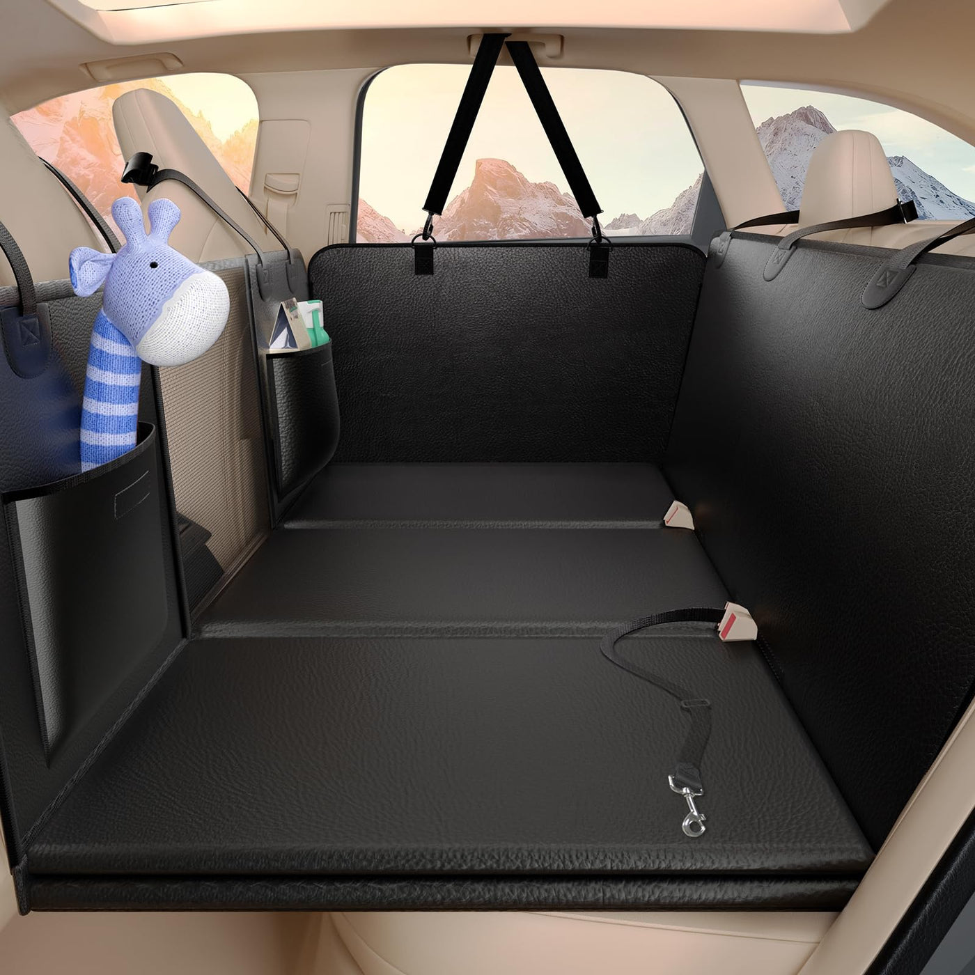 Expand Back Seat Space +45%: Back Seat Extender For Dogs Extends The Original Seat Depth Of The Car'S Back Seat To Connect To The Front Seat, Covering The Puddle Between The Front And Rear Seats So That Dogs Can No Longer Fall Into The Puddle, And They Can Easily Walk And Stretch Their Limbs In The Backseat Area. That 45% Extra Wiggle Room Can Go A Long Way Toward Easing Your Furry Friend'S Anxiety On Long Car Trips. Suitable For All Sizes Of Dogs And Multi-Dog Family Travel. Tested 500Lb Load Capacity With Upgraded Hard Bottom: Dog Car Seat Cover For Back Seat Uses An Upgraded And Thickened Version Of The Hard Bottom, Making The Dog Ride On It More Stable And Safe. Our Hard Bottom Car Seat Cover For Dogs Has Been Tested To Carry Up To 400 Pounds, Even Carry Three Dogs. The Upgraded Hard Bottom Weighs More Than Anything On The Market And Is Much Stronger. Suitable For Ordinary Cars, Neutral Suvs And Small Trucks. Sturdy, Tough, Non-Slip, No-Smell Fabric: Our Backseat Extender For Dogs Adopt Upgraded Quality Material. 4X4 Density Of 600D Oxford Cloth Making The Dog Car Seat Cover Stronger And Easier To Clean. Pu Coating Is Softer And No Smell Than Other Pvc Layers. With Tpu Waterproof Layer, Double Waterproof Layer After Testing Will Not Leak To The Car Seat. The Anti-Adhesive Bottom Of Back Seat Extender For Dogs Prevents Your Dog From Slipping. Non-Slip Heavy Duty Zipper With Lock, Strong And Sturdy. Upgraded Anti-Scratch Pu Leather: Backseat Extender For Dogs Is Upgraded With Cat Scratch Pu Leather Material And A Layer Of Cushioning Cotton. The Surface Of The Cover Is More Resistant To Scratching And Abrasion, And The Waterproof Strength Is Higher And Will Not Leak. The Pu Material Increases The Softness Of The Surface, The Dog Will Not Feel Hard When Stepping On It. Unlike Pvc, Pu Has No Odor, And Pu Leather Also Has Some Anti-Slip Ability. Overall More Solid Tough And Durable. Tested No Water Seepage, Easy To Clean, Protect Car Seat: Backseat Cover For Dogs In Car Has Been Tested For Its Double-Layer Water Resistance And Absolutely Does Not Seep. At The Same Time, The Enclosed Design Of Back Seat Extender For Dogs Keeps Your Back Seat Cleaner And Protects It From Your Dog'S Hair, Saliva And Paws. At The Same Time Can Be Disassembled For Machine Washing, Can Also Be Cleaned With Ordinary Cleaning Brush, Very Convenient. Foldable Design, Viewable Window, Storage Layers, Handbag Package: Dog Hammock For Car Hard Bottom Can Fold For More Efficient Use. The Mesh Zip-Top Window In The Middle, Which Allows Ventilation And Allows The Dog To See You, Interact And Reduce Anxiety. Back Seat Pet Cover For Dogs Also Has Two Large-Capacity Storage Pockets For Dog Toys And Treats. The Whole Pet Seat Cover For Back Seat Can Put Into A Portable Bag. Take Your Dog On A Perfect Trip!