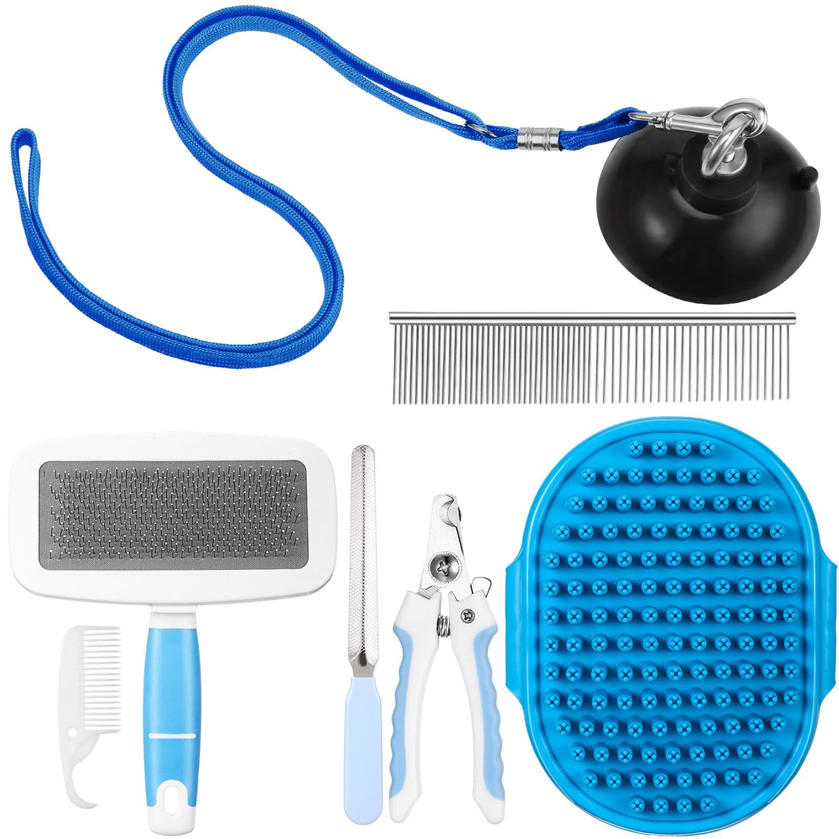 Features: Quality Pet Grooming Kit: Experience The Ideal Grooming Solution For Your Pets With Our Dog Grooming Organizer. All The Pieces In The Kit Are Made From Sturdy Materials, Ensuring Its Durability. Easy And Efficient Cleanliness For Your Pets: Our Dog Shower Accessories Provides A Complete, Easy And Efficient Solution For Your Pets Cleanliness. The Kit Includes Tools That Help In Maintaining The Hygiene Of Your Pets, Allowing Your Friends To Stay Healthy And Happy. Specifications: Material: Suction Cup: Rubber Traction Rope: Nylon Pet Pin Comb: Tpr Straight Comb: Stainless Steel Bath Brush: Tpr Color: Blue Size: Suction Cup About Diameter 3.46 Inches/ 88 Mm Nylon Traction Rope About 20.87 Inches/ 53 Cm Pet Pin Comb Size About 6.3 X 4.92 X 1.38 Inches/ 16 X 12.5 X 3.5 Cm Nail Clipper Size About 4.33 X 1.57 Inches/ 11 X 4 Cm File About 5.71 Inches/ 14.5 Cm Stainless Steel Straight Comb Size About 7.48 X 1.65 Inches/ 19 X 4.2 Cm Bath Brush Not Unfolded About 4.92 X 3.54 X 0.47 Inches/ 12.5 X 9 X 1.2 Cm Package Includes: 1 X Dog Bathing Leash With A Suction Cup 1 X Pin Comb 1 X Straight Comb 1 X Nail Clippers 1 X File 1 X Bath Brush Notes: Manual Measurement, Please Allow Slight Errors On Size. The Color May Exist A Slight Difference Due To Different Screen Displays. Small Items Are Included, Please Keep Them Away From Pets In Case Of Choking Risk. Before Purchase, Confirm Whether The Product Size Is Suitable For Your Pet, And Observe The Pet'S Reaction When Using. Please Remove The Product In Time If There Is Any Discomfort.