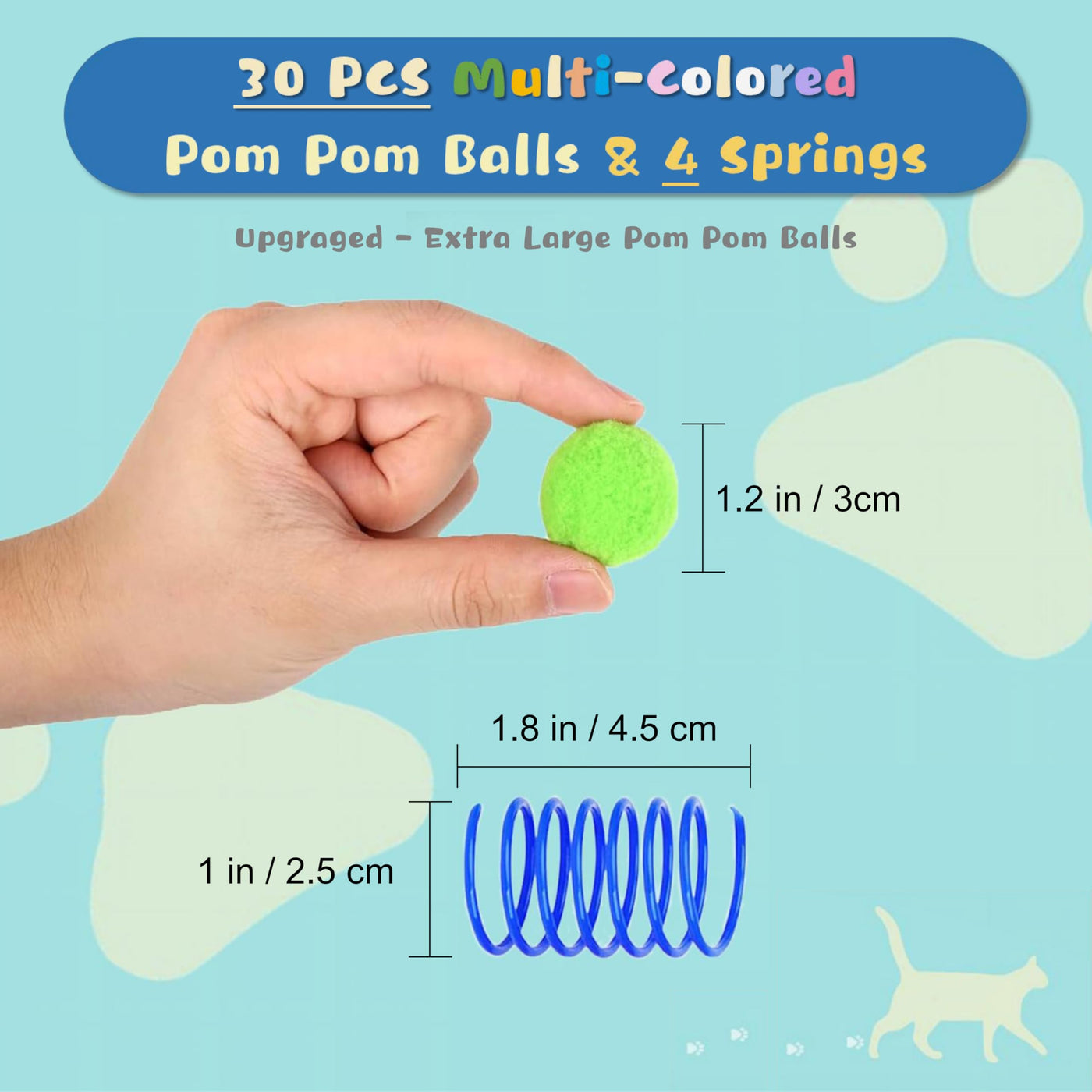 ABOUT US We are big cat lovers and have had cats for 5 years. Bai and Kevin are the names of our two cats. These two little fellas are our product managers. Every items they chose have brought us many wonderful times, and we want to share this happiness with you and your pets. This is why we created the BaiKevin brand. We will always be committed to providing cats favorite items and satisfying customer service for you and your furry friend. OUR PRODUCT Interactive Playtime - Closer to your babies! Rntertain Themselves - Great gift for indoor cats! DIY IDEAS - Make your own cat necklace accessries! PACKAGE CONTENT 30 Pcs Plush Pom Pom Ball (Assorted Colors) 4 Pcs Spring Cat Toy 1 Pcs Ziplock Storage Bag All items are packed in a ziplock bag for easy storage.